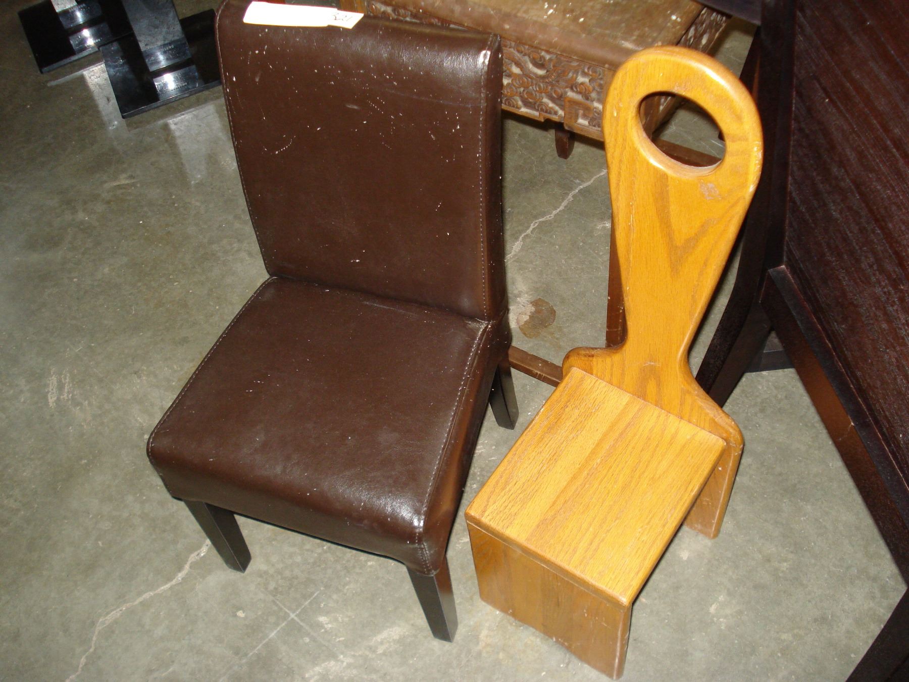 KIDS LEATHER CHAIR AND WOOD CHAIR