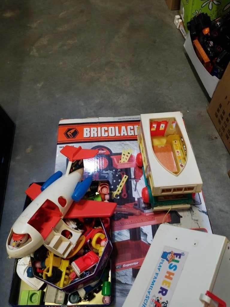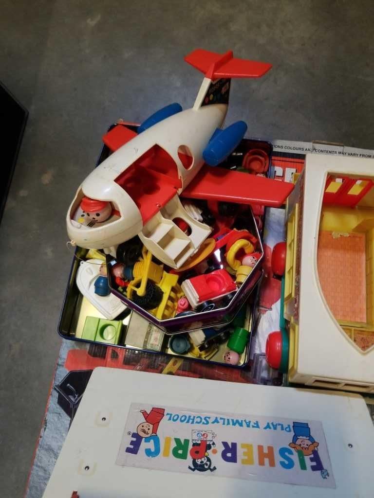 KIDS WORK BENCH WITH TOOLS AND VINTAGE FISHER PRICE PLAY SETS
