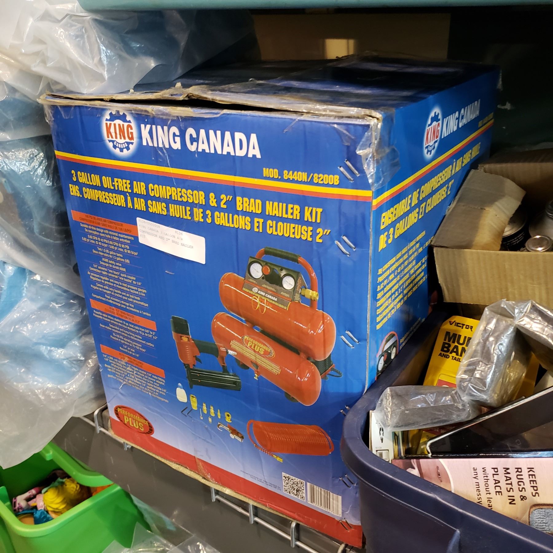 KING CANADA 3 GALLON AIR COMPRESSOR AND 2" BRAD NAILER KIT