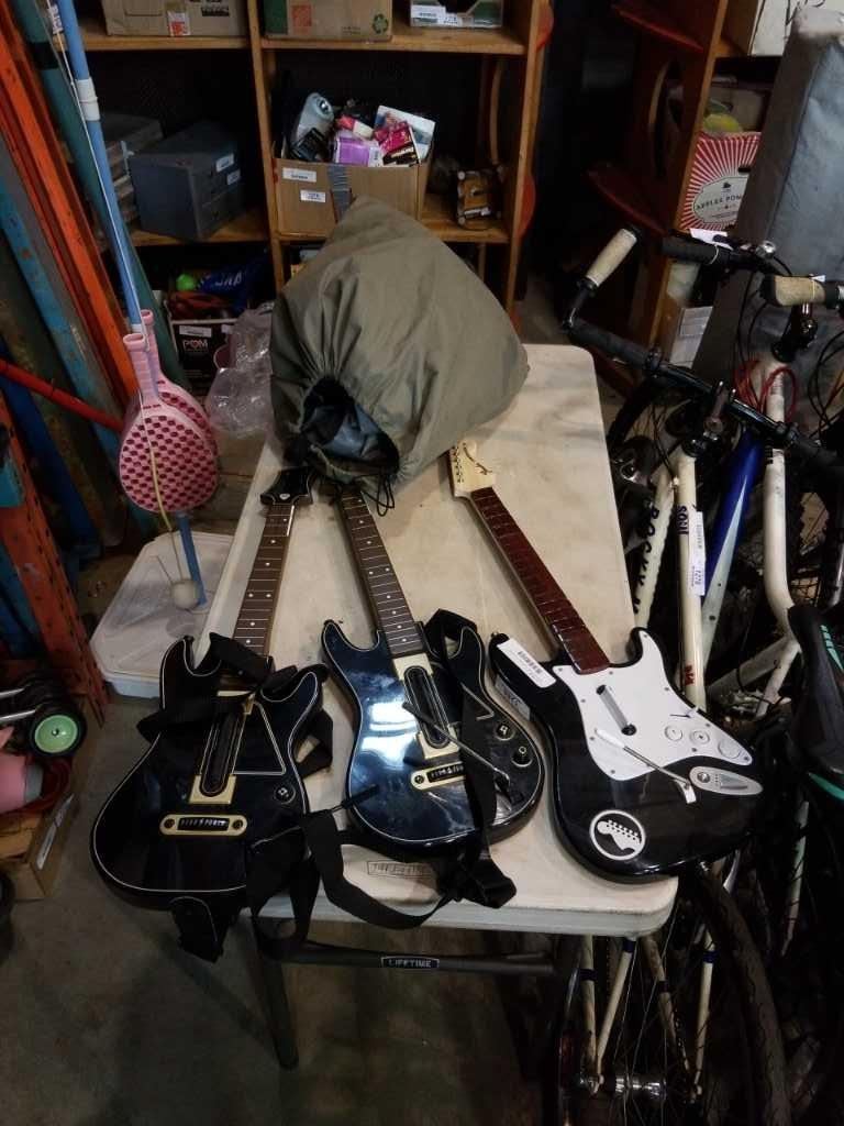 KINGSIZE AIR MATTRESS AND ROCKBAND VIDEOGAME GUITARS