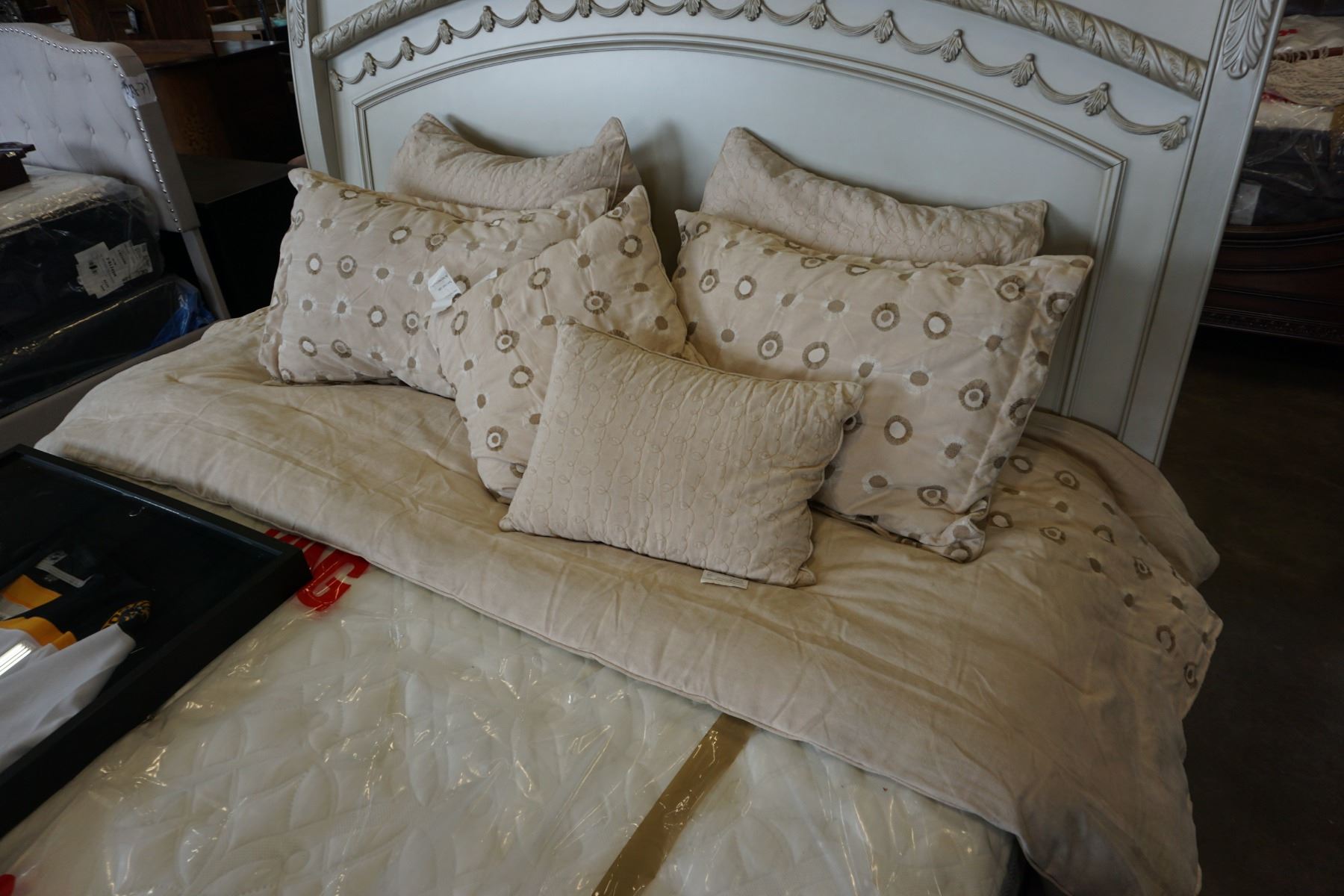 KINGSIZE DUVET AND 4 MATCHING PILLOW SHAMS WITH PILLOWS, AND 3 ACCENT PILLOWS, USED IN SHOWROOM ONLY
