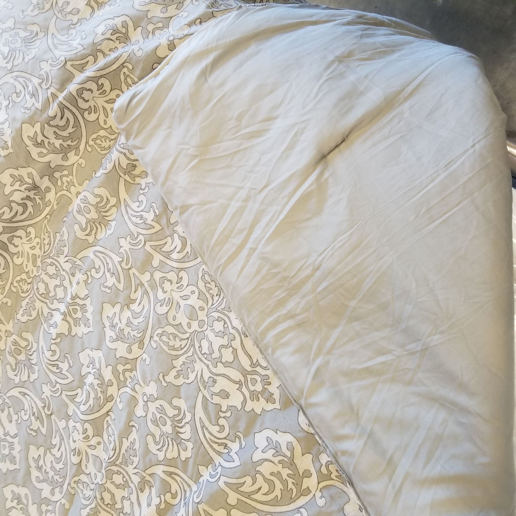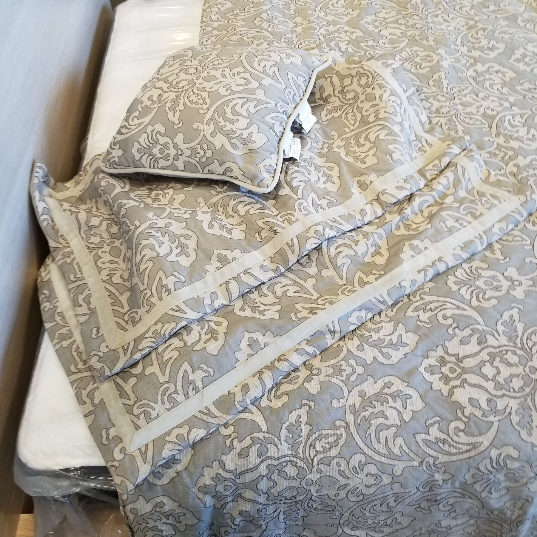 KINGSIZE FLORAL DUVET AND 2 KINGSIZE SHAMS, 1 ACCENT PILLOW, USED IN SHOWROOM ONLY