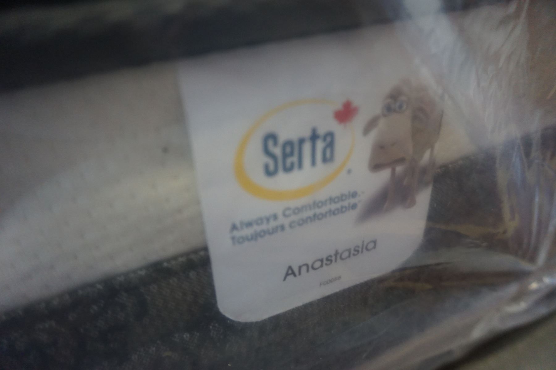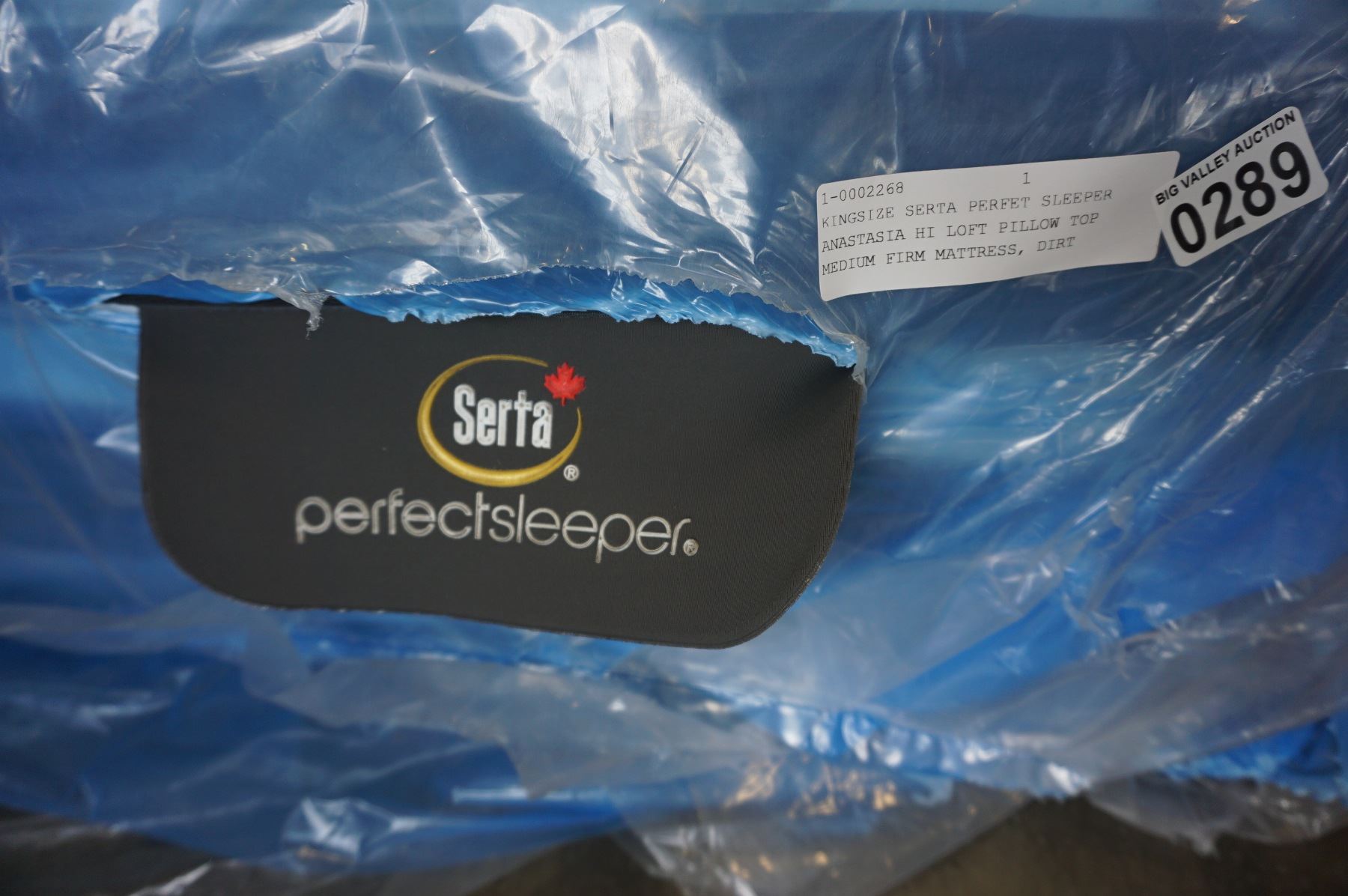 KINGSIZE SERTA PERFECT SLEEPER ANASTASIA HI LOFT PILLOW TOP MEDIUM FIRM MATTRESS, DIRT SCUFF, AS NEW