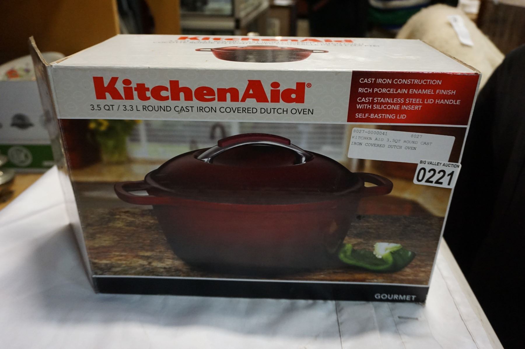 KITCHEN AID 3.5QT ROUND CAST IRON COVERED DUTCH OVEN