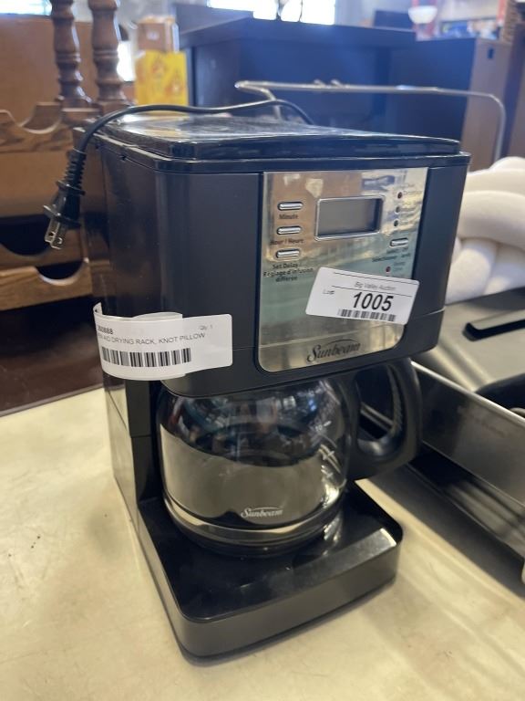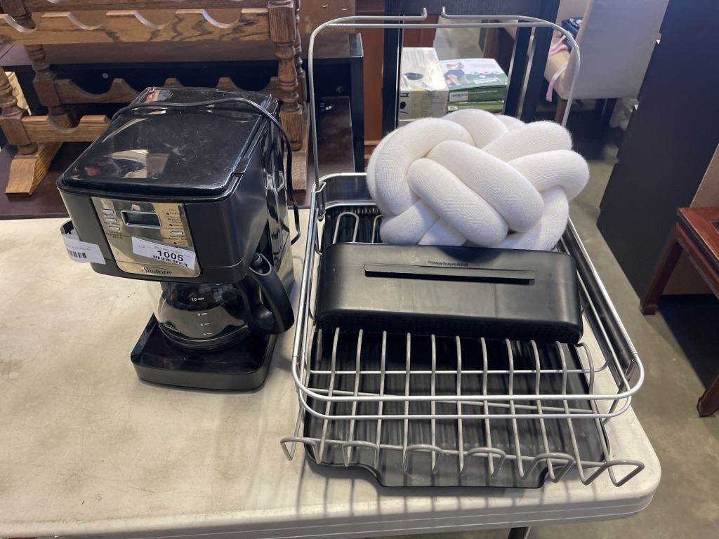 KITCHEN AID DRYING RACK, KNOT PILLOW AND SUNBEAM COFFEE MAKER
