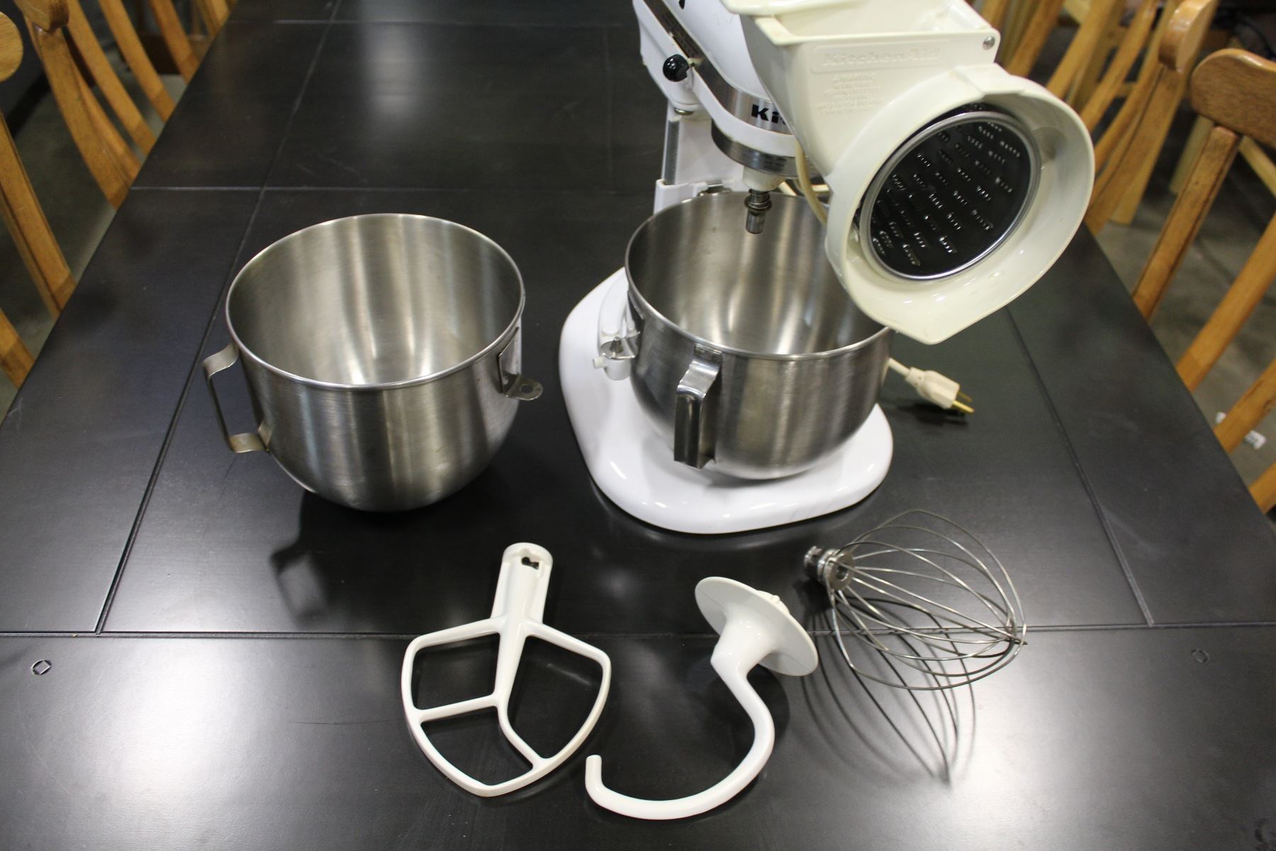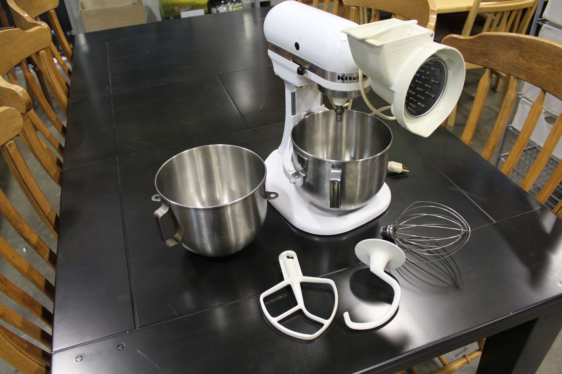 KITCHEN AID MIXER WITH 2 BOWLS AND 4 ATTACHMENTS