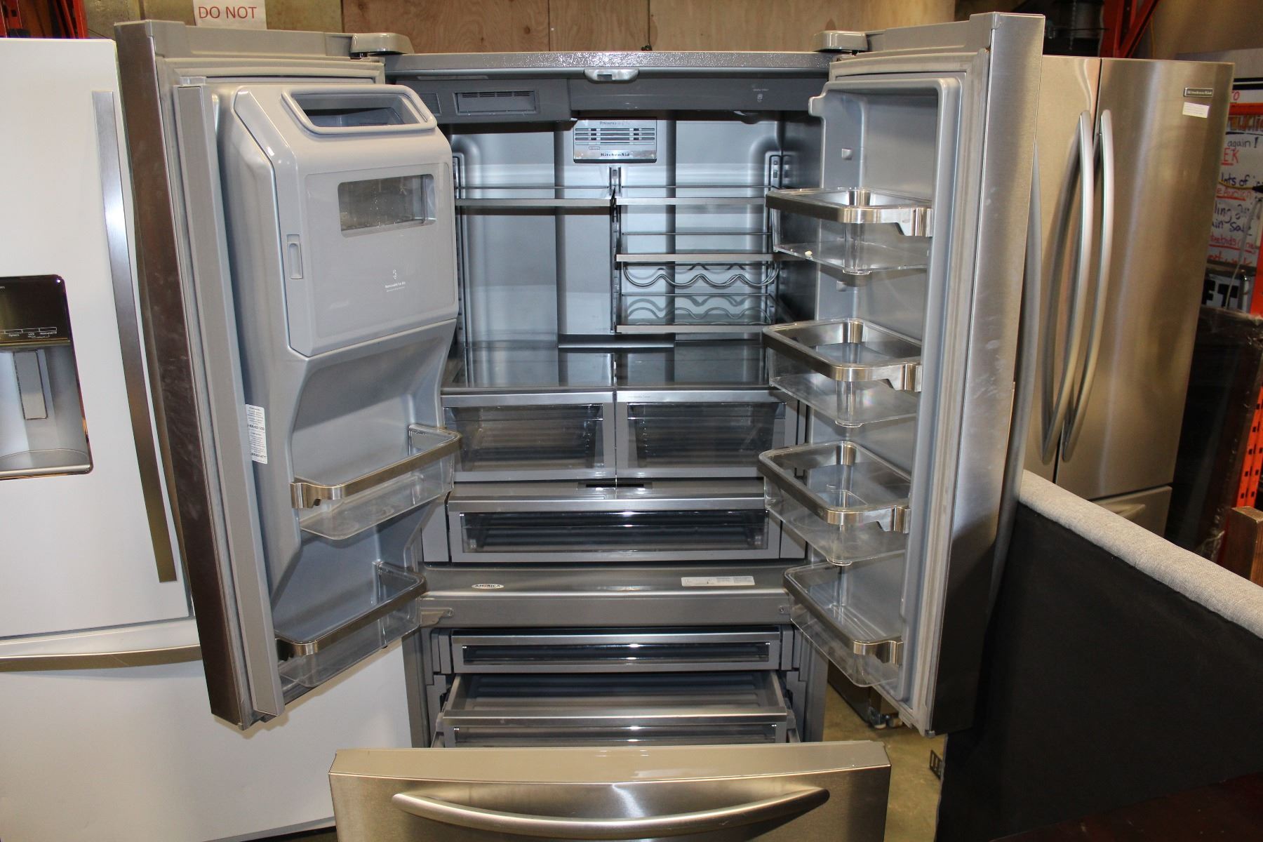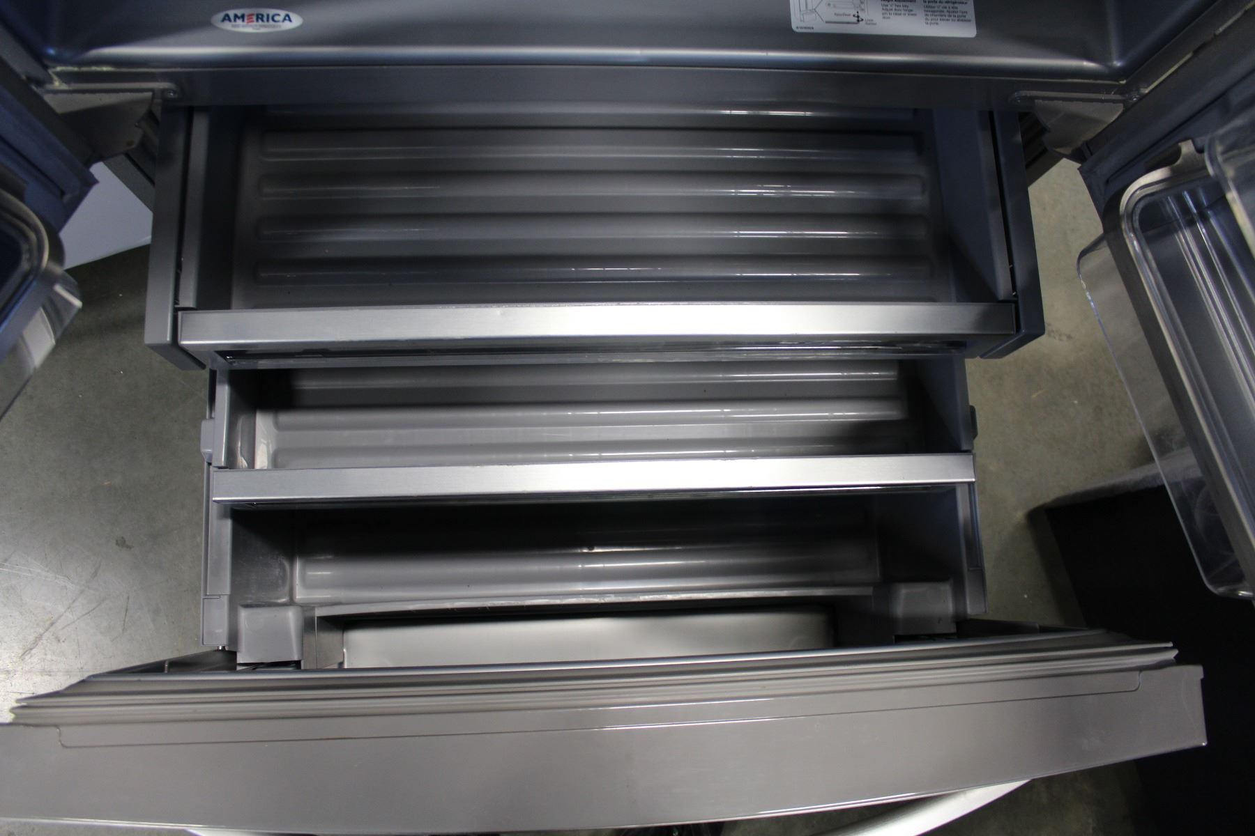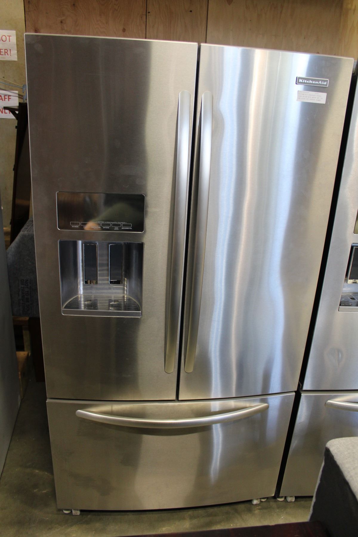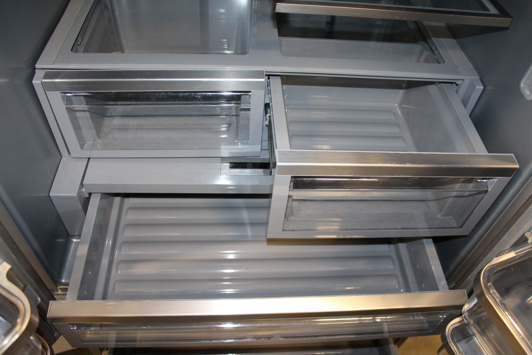 KITCHEN AID STAINLESS DOUBLE DOOR FRIDGE WITH WATER AND ICE AND SLIDE OUT FREEZER DRAWER IN WORKING