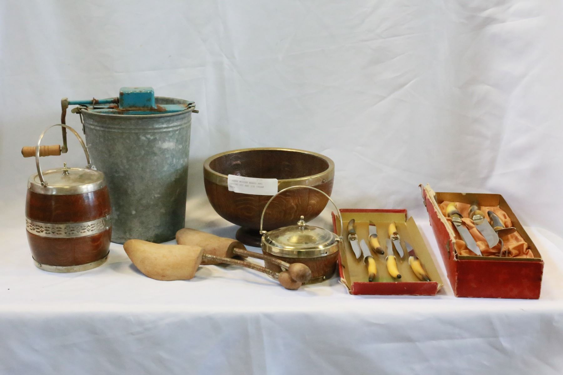 KITCHEN WOODEN WARES AND CARVING SET AND ICE CREAM MAKER