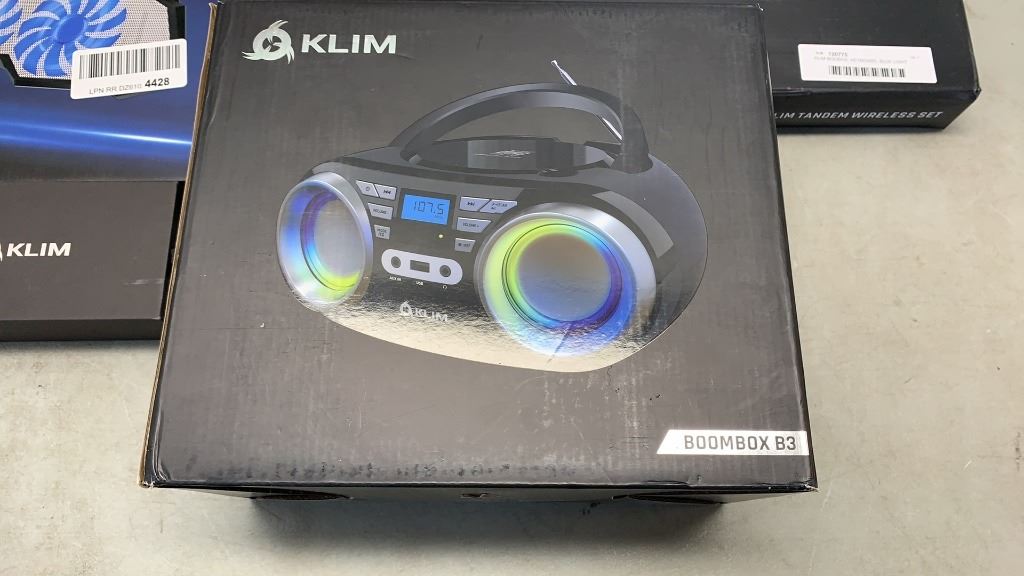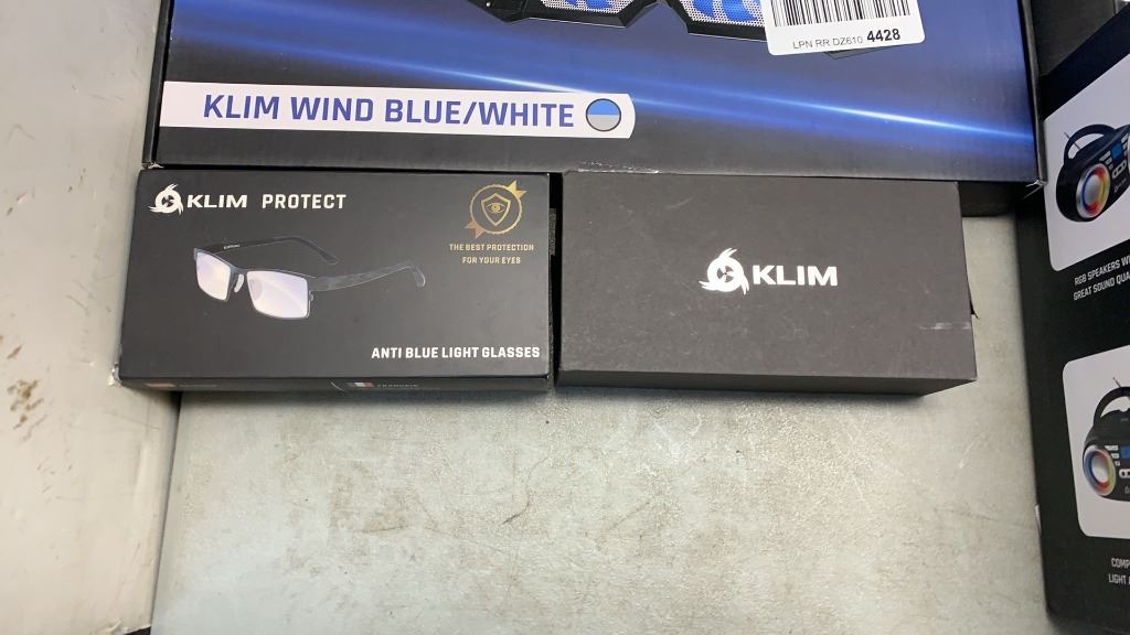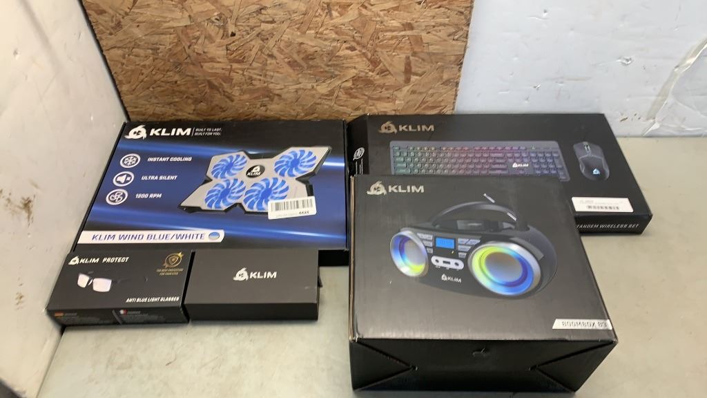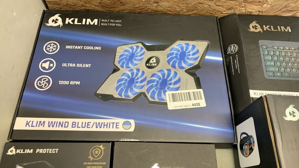 KLIM BOOBOX, KEYBOARD, BLUE LIGHT GLASSES, BLUE LIGHT CLIP ON GLASSES AND LAPTOP COOLER