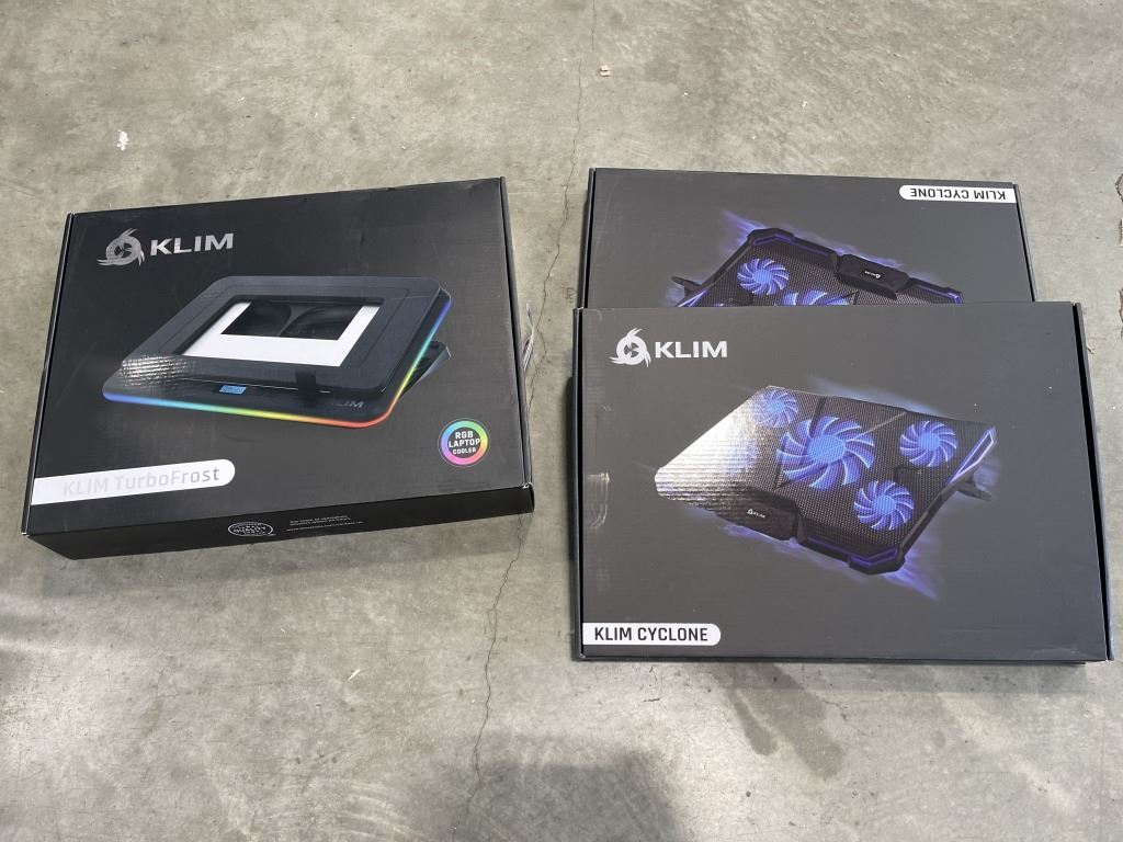 KLIM TURBOFROST AND 2 CYCLONE LAPTOP COOLERS, AS NEW