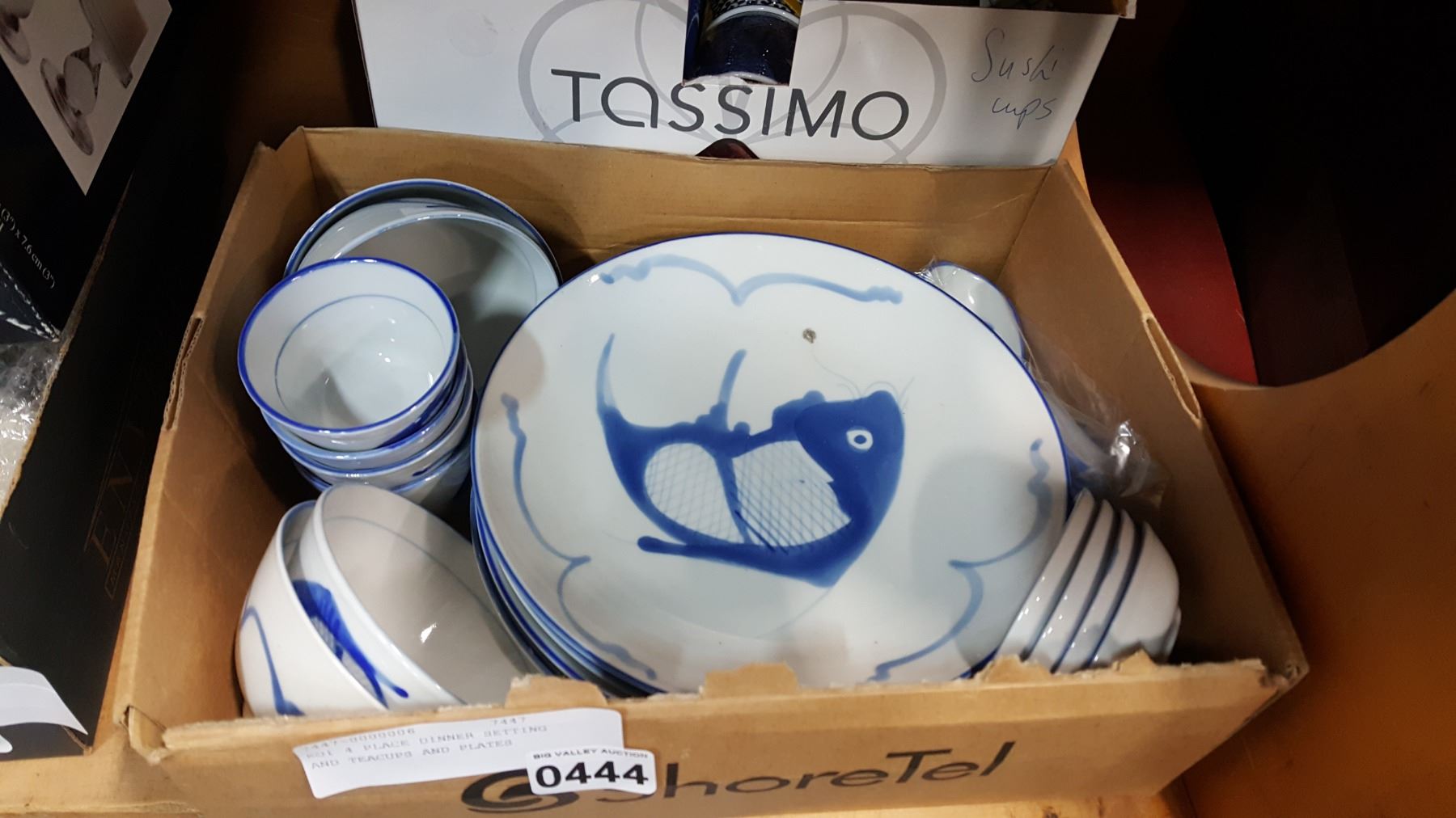 KOI 4 PLACE DINNER SETTING AND TEACUPS AND PLATES
