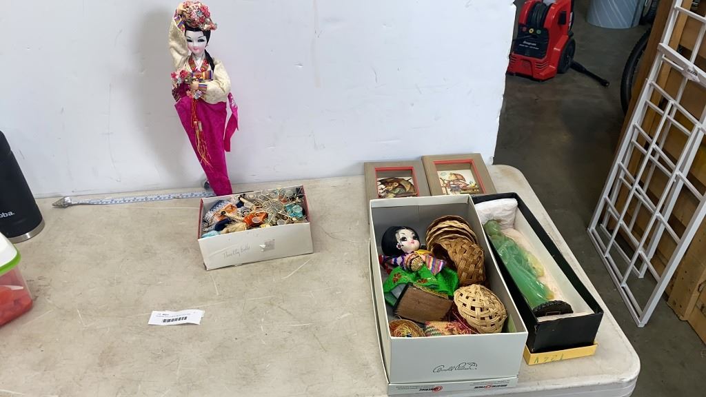KOREAN DOLLS WITH MUSIC BOX AND SMALL DOLL FIGURES