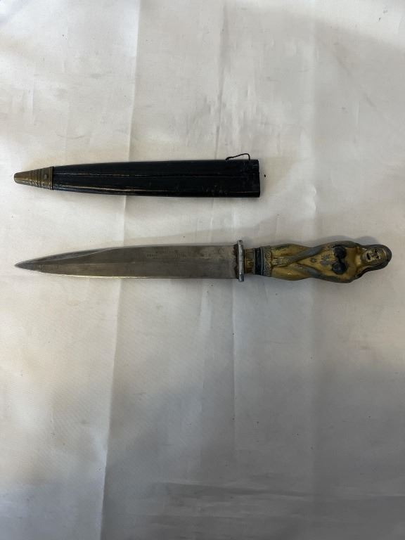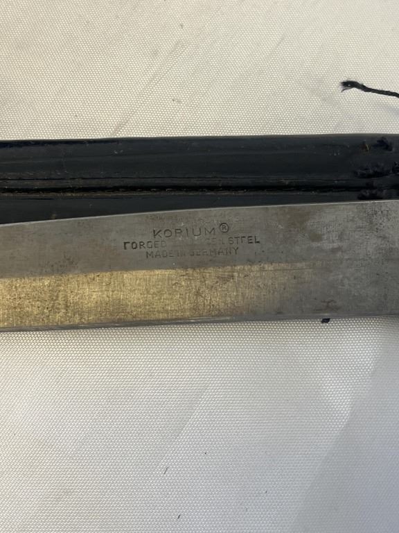 KORIUM FORGEN SOLINGEN STEEL KNIFE, MADE IN GERMANY WITH LEATHER SHEATH, US PATENT PENDING