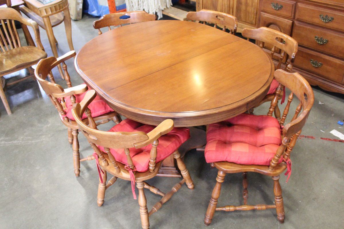 KROEHLER MAPLE DINING TABLE WITH LEAF AND SIX CHAIRS