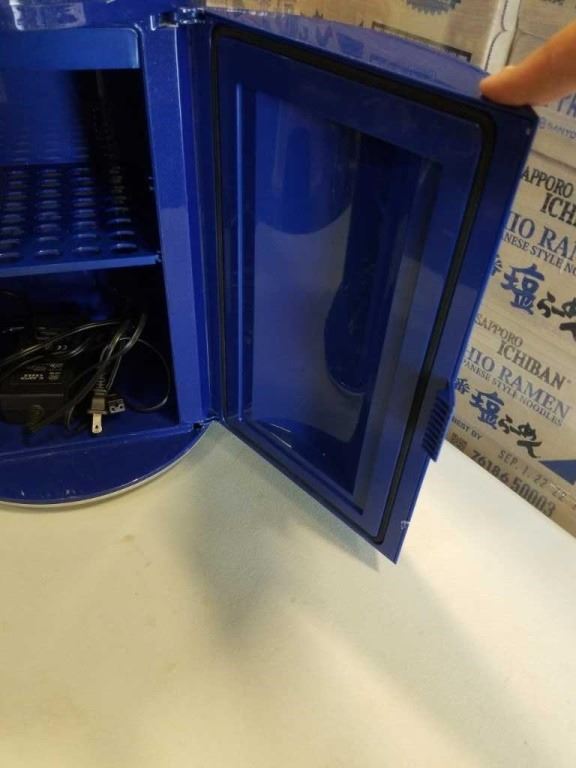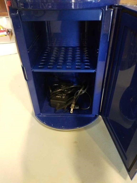 LABATT BLUE LIGHT NOVELTY HOT COLD ELECTRIC FRIDGE - WORKING, WITH POWER CORD