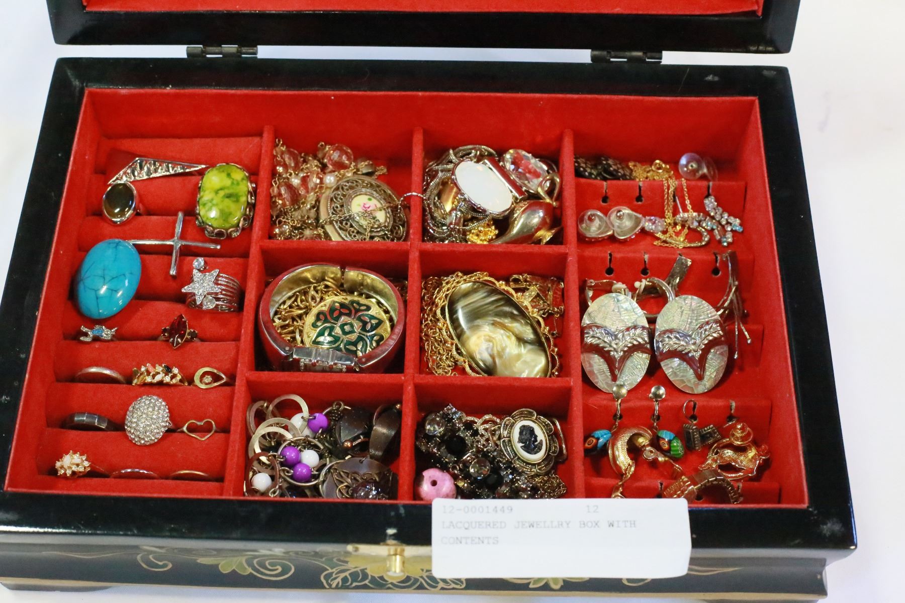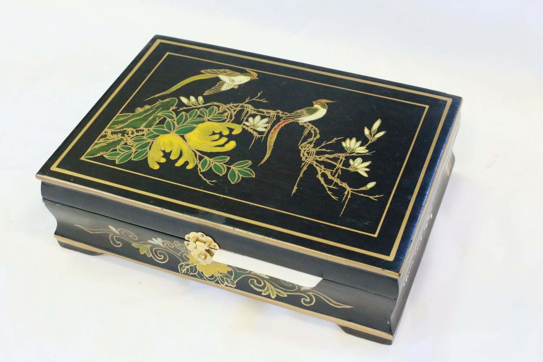 LACQUERED JEWELLRY BOX WITH CONTENTS