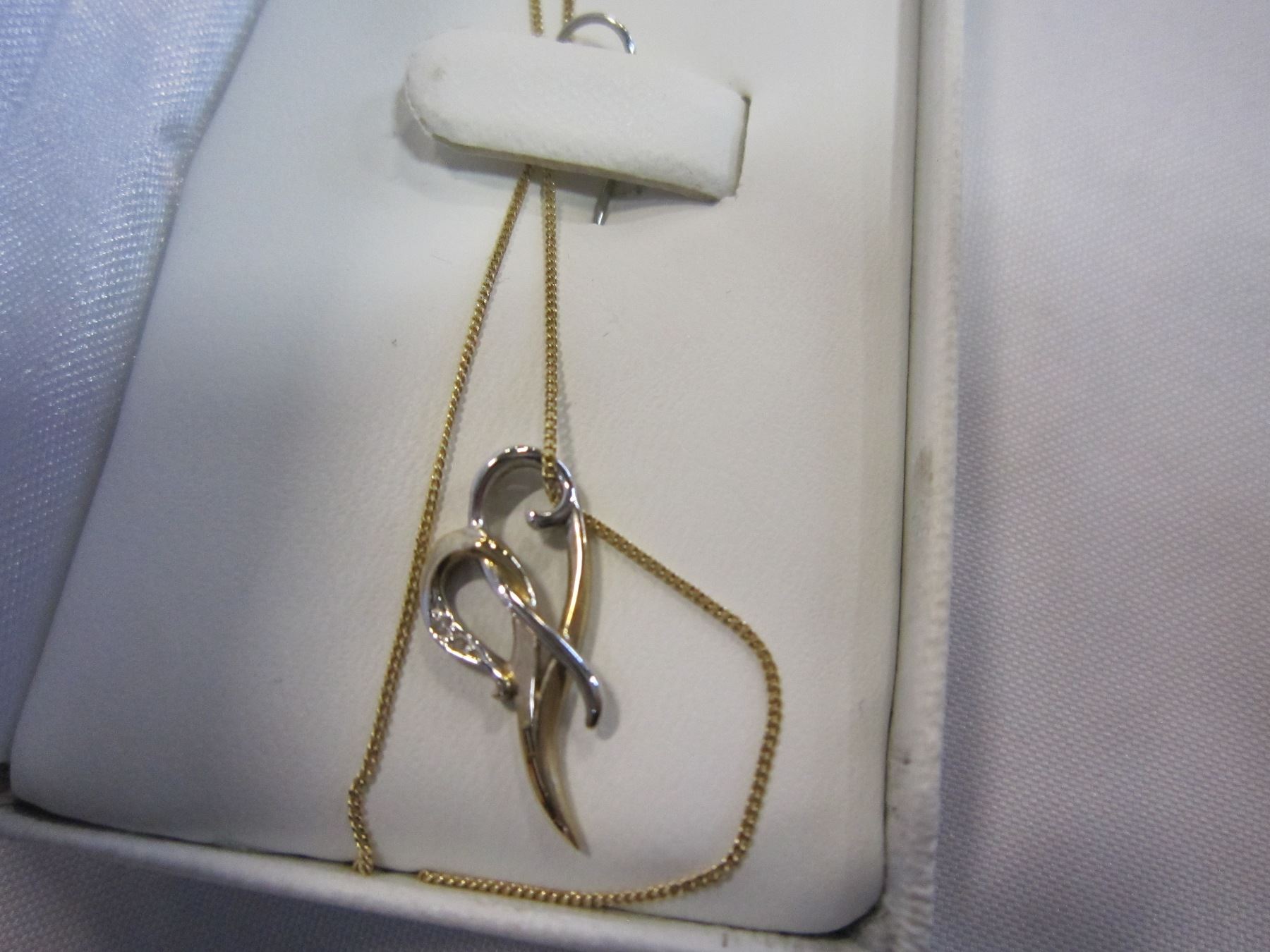 LADIES 10KT GOLD NECKLACE W/ 10KT 2 TONE WHITE AND YELLOW GOLD HEART PEDNANT