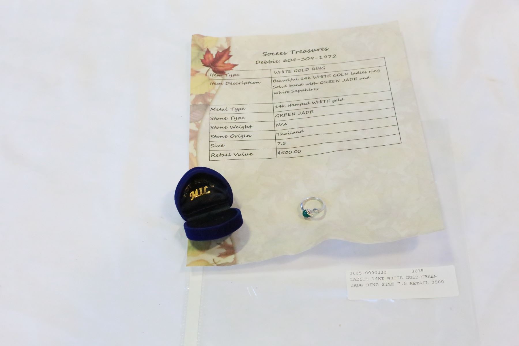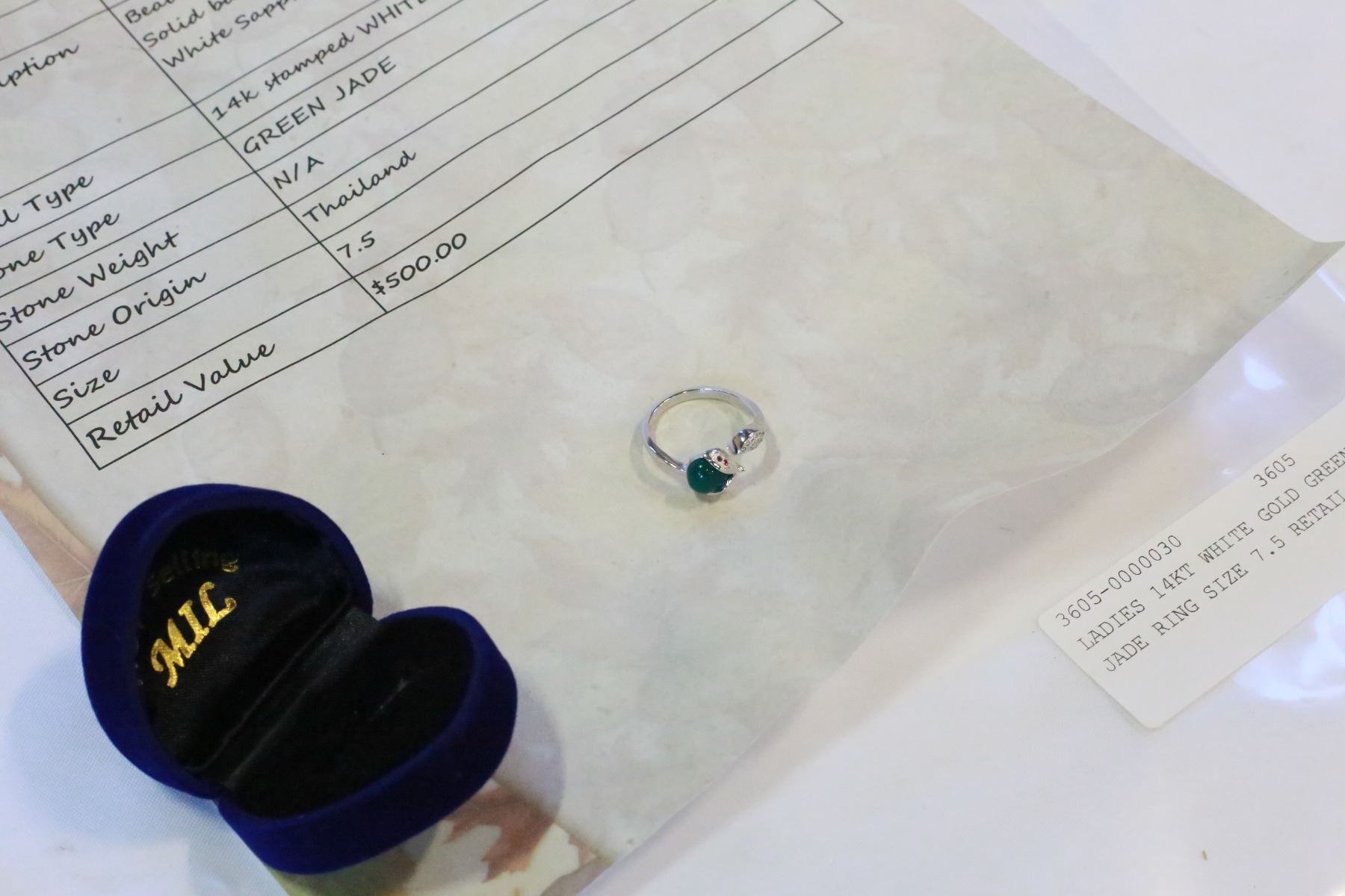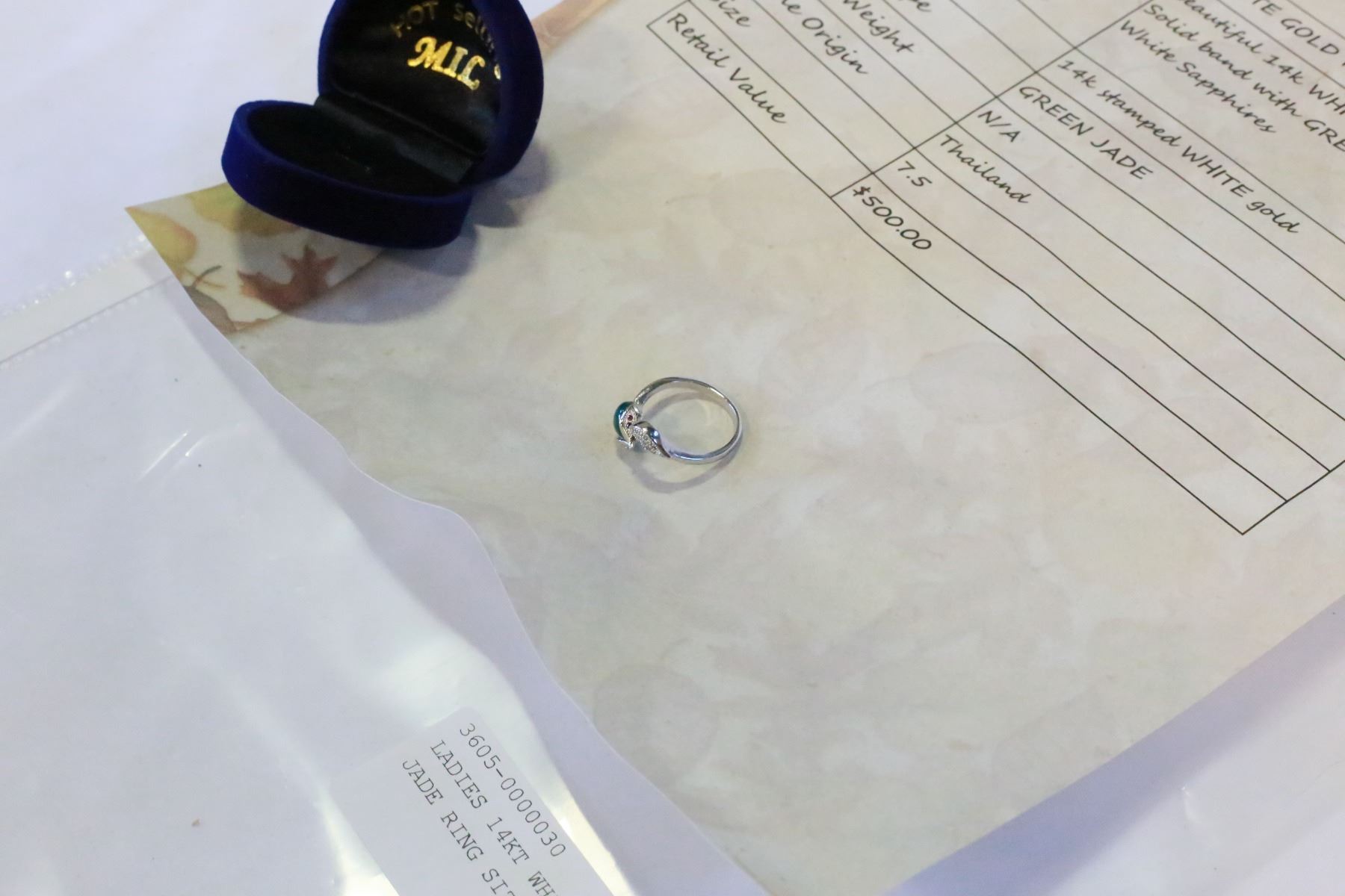 LADIES 14KT WHITE GOLD GREEN JADE RING SIZE 7.5 RETAIL $500