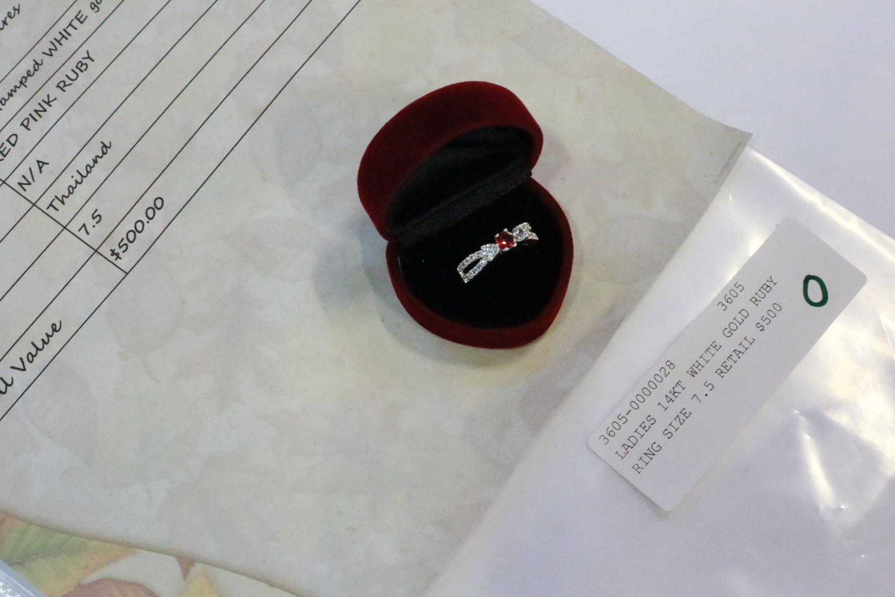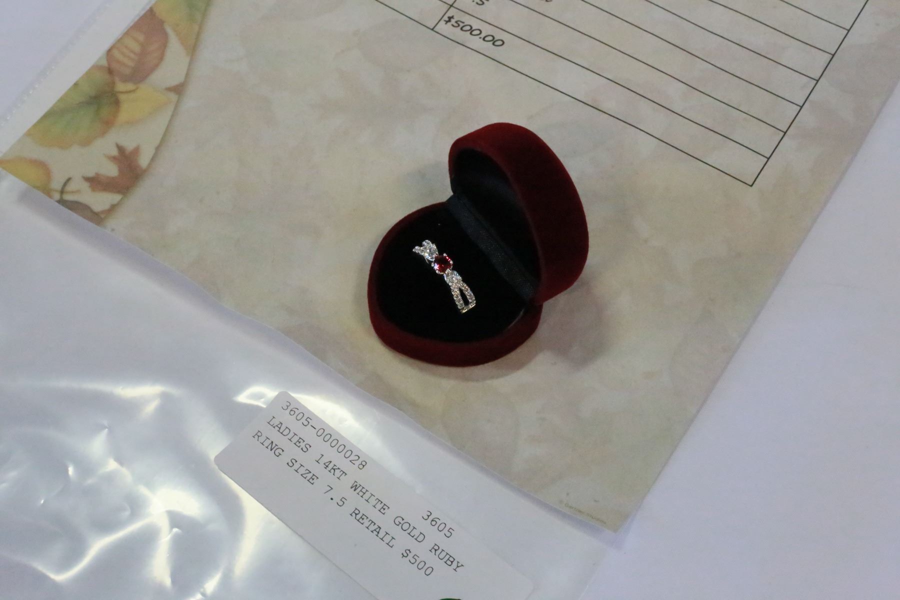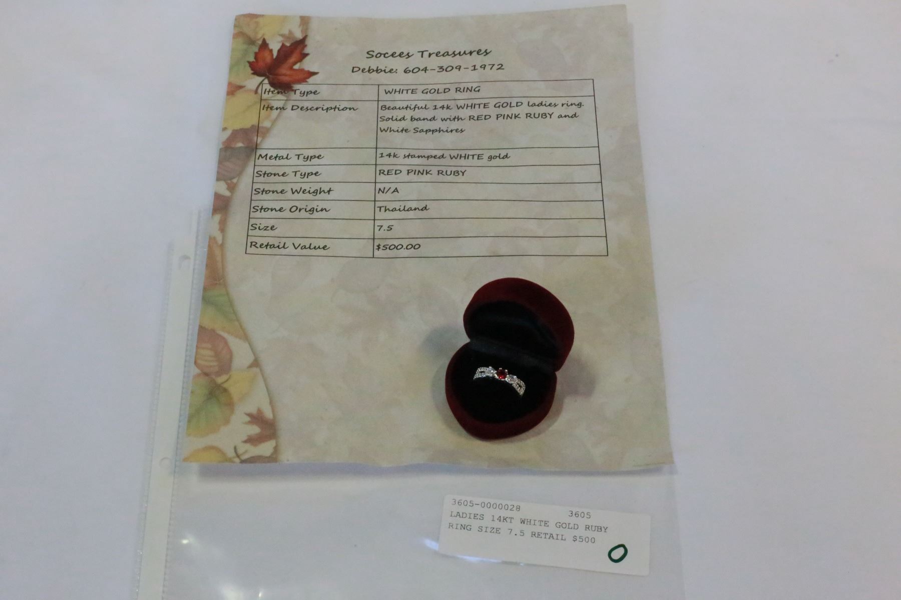 LADIES 14KT WHITE GOLD RUBY RING SIZE 7.5 RETAIL $500