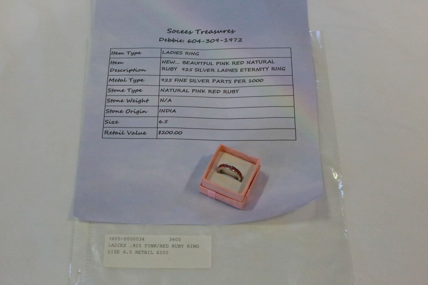 LADIES .925 PINK/RED RUBY RING SIZE 6.5 RETAIL $200