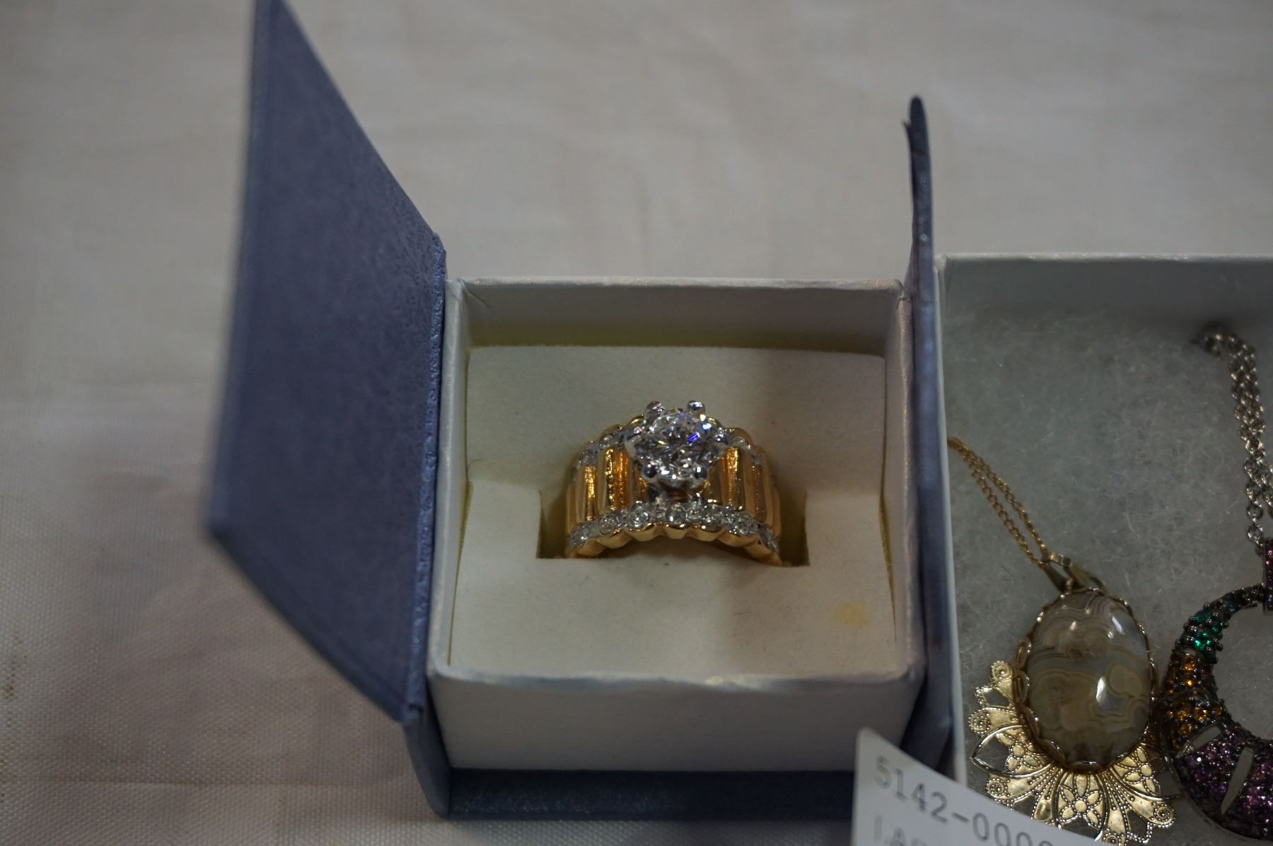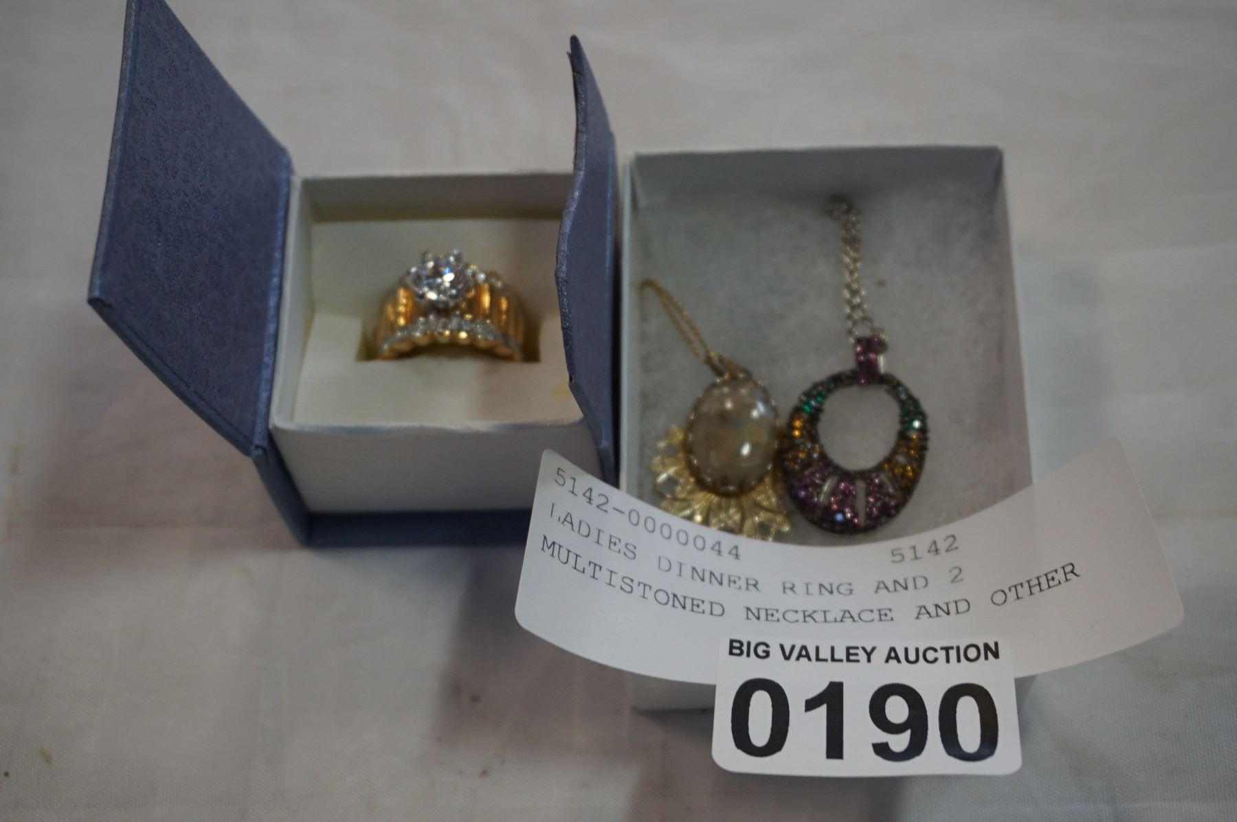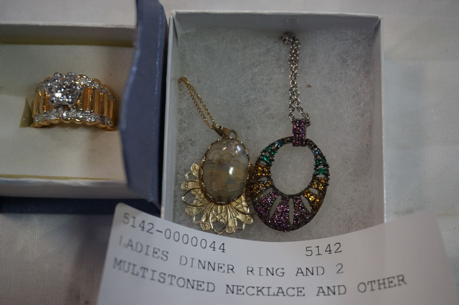 LADIES DINNER RING AND 2 MULTISTONED NECKLACE AND OTHER