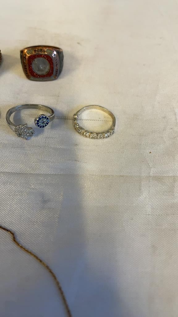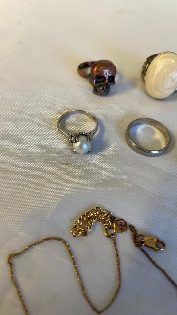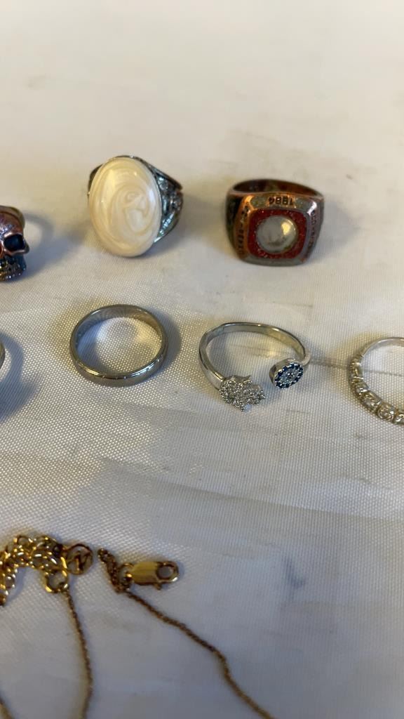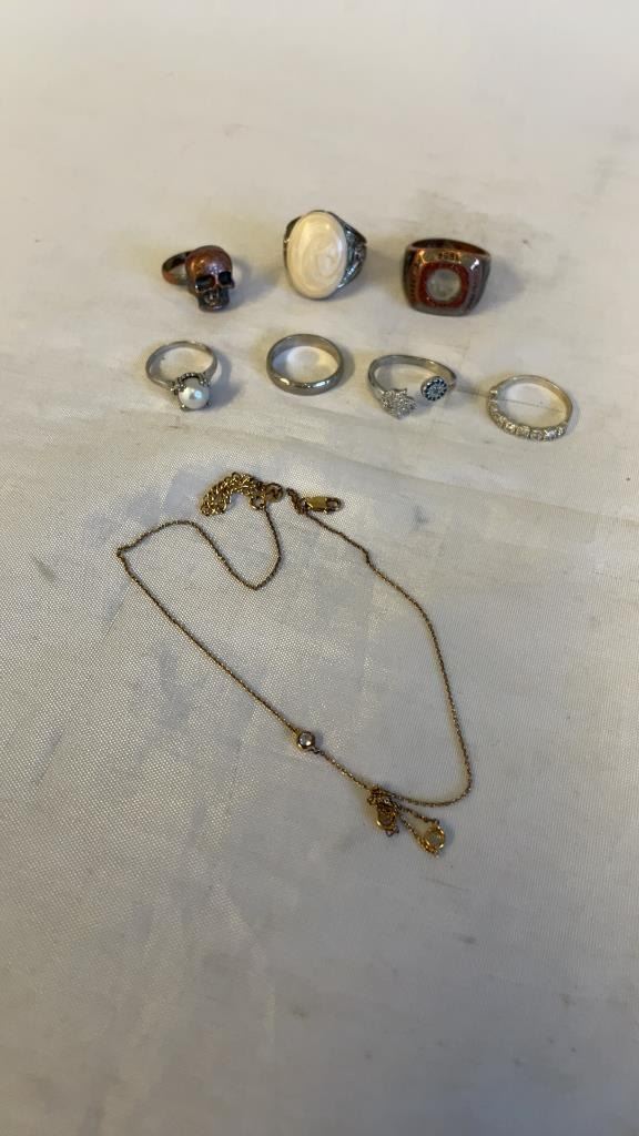 LADIES MARKED ESTATE RINGS AND CHAIN