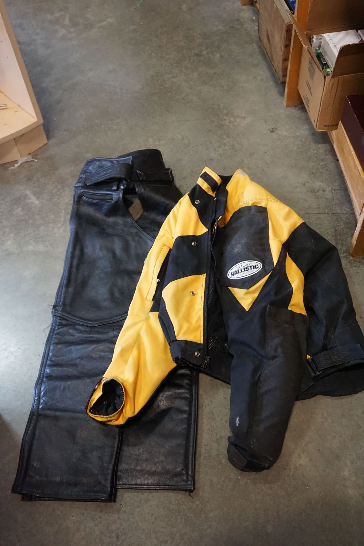 LADIES MEDIUM JOE ROCKET DIRT BIKE JACKET AND PAIR OF LEATHER MOTORCYCLE CHAPS - LADIES MEDIUM