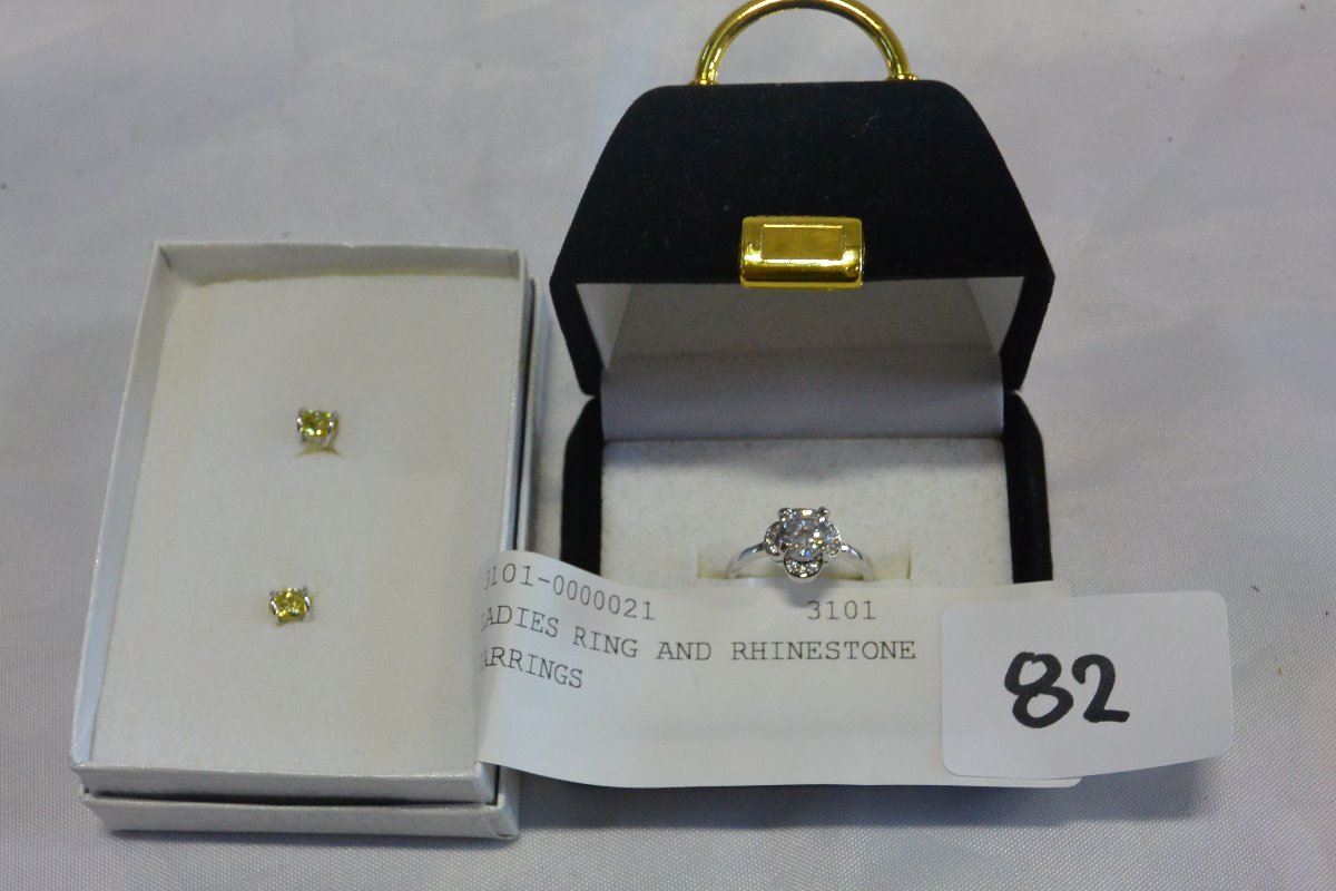 LADIES RING AND RHINESTONE EARRINGS