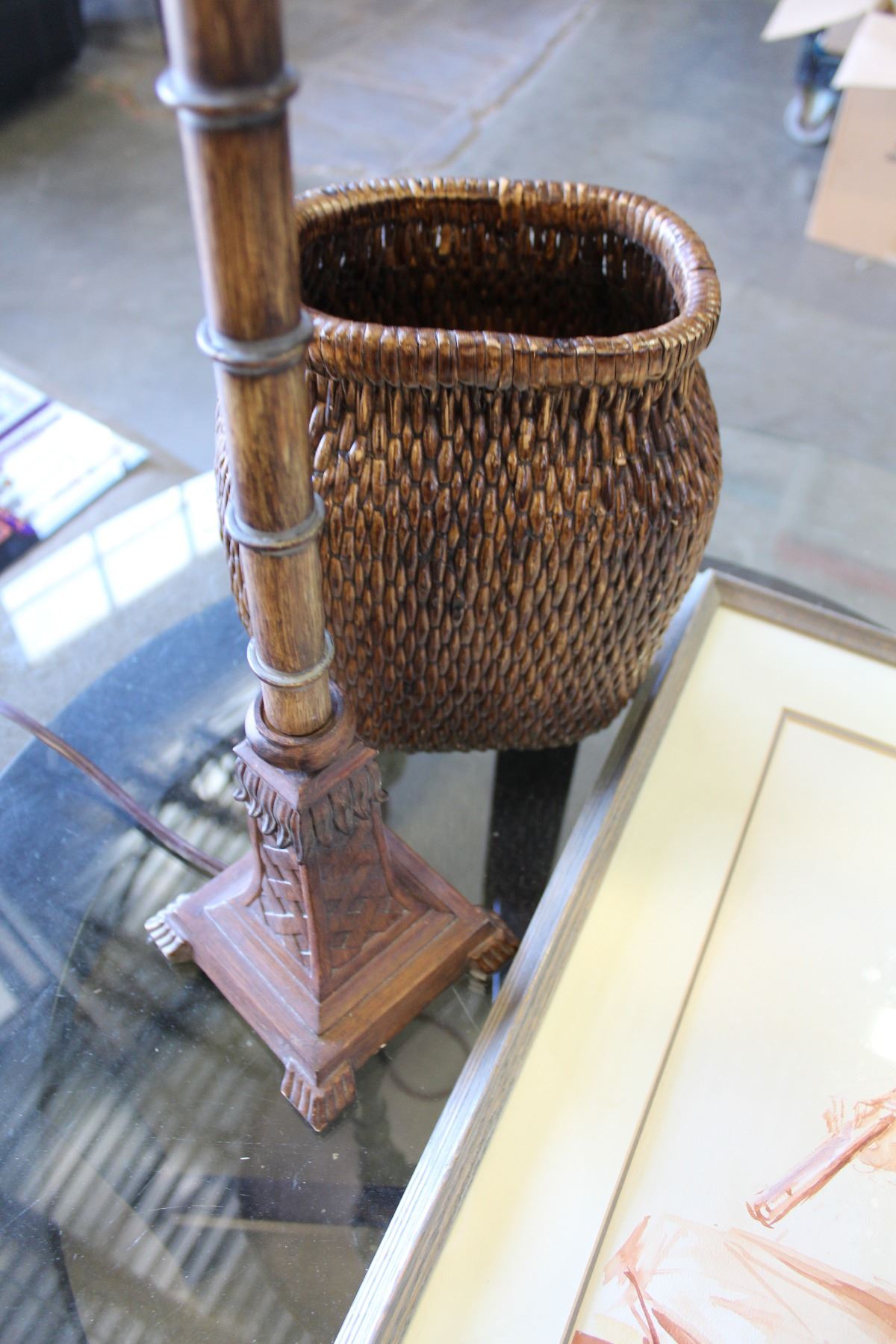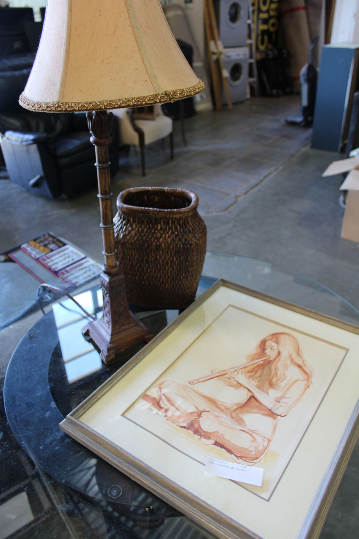 LAMP, PAINTING, AND BASKET