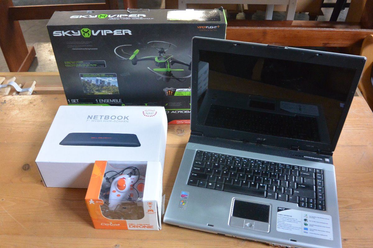 LAPTOP NETBOOK AND RC DRONE AND PENTEX CAMERA IN BAG