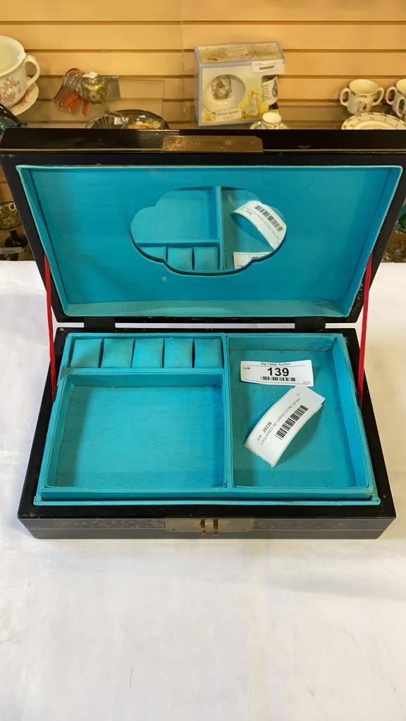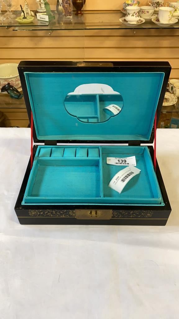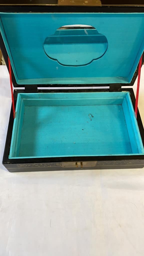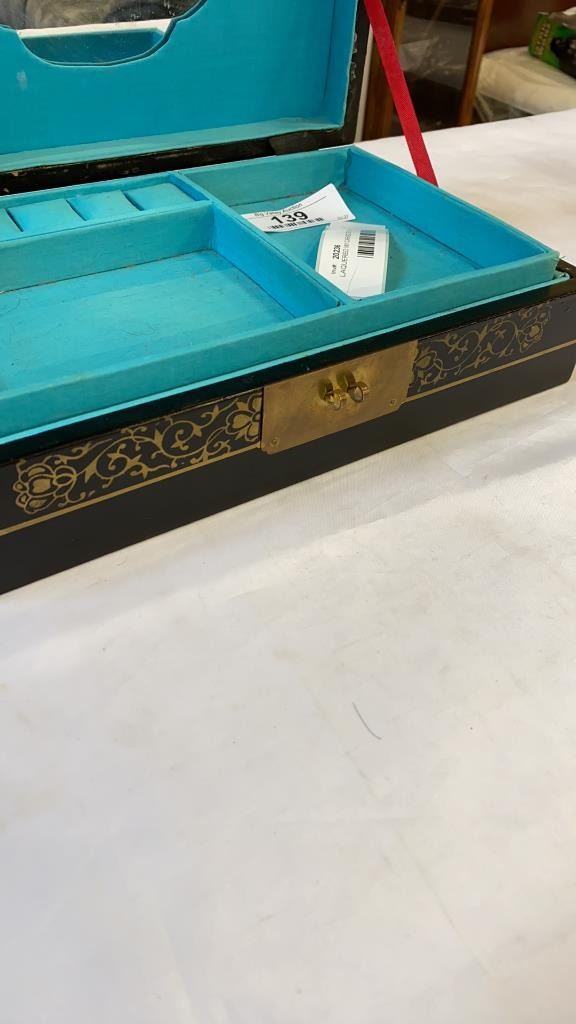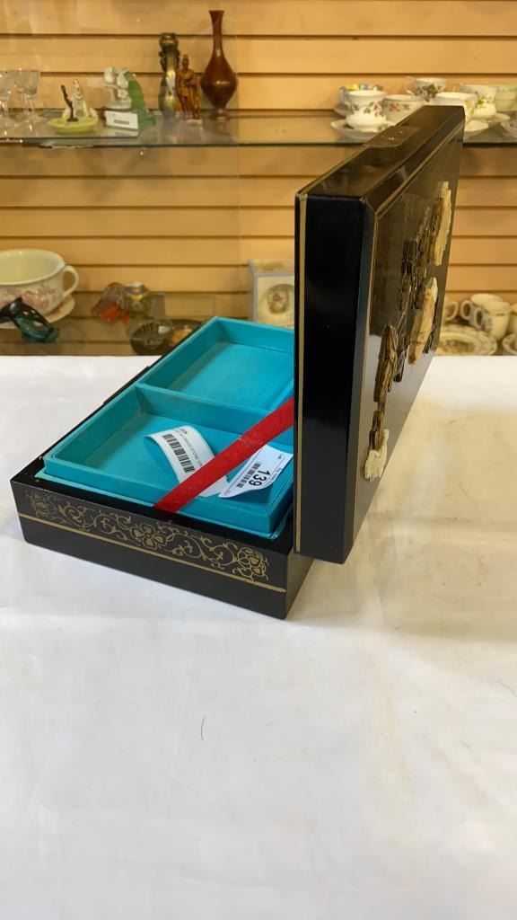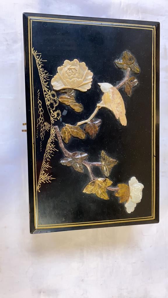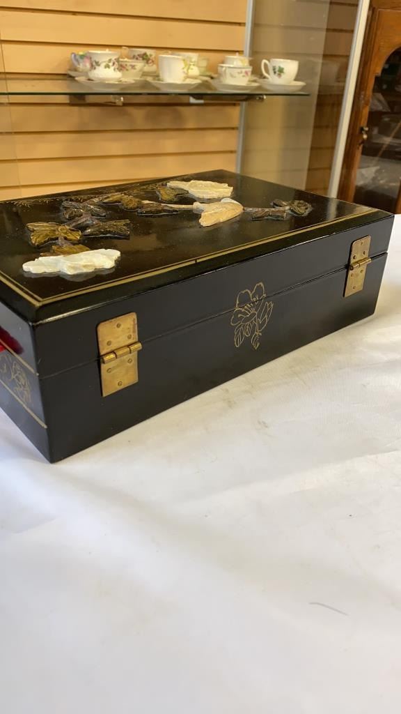 LAQUERED W/ CARVED STONE VINTAGE CHINESE JEWELLERY BOX