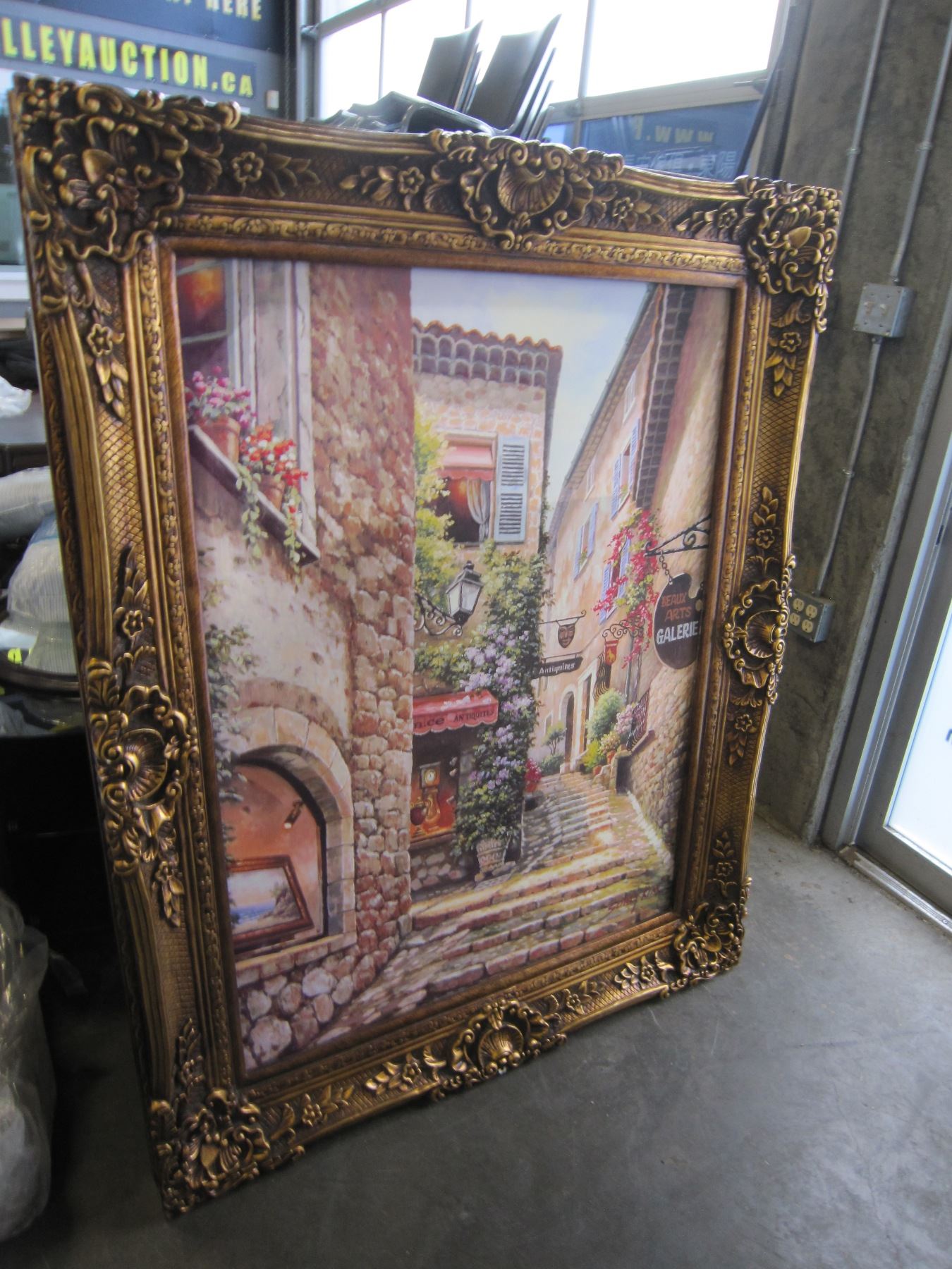 LARGE 5 FOOT OIL ON CANVAS BY SUNG KIM STREET SCENE IN GILT FRAME