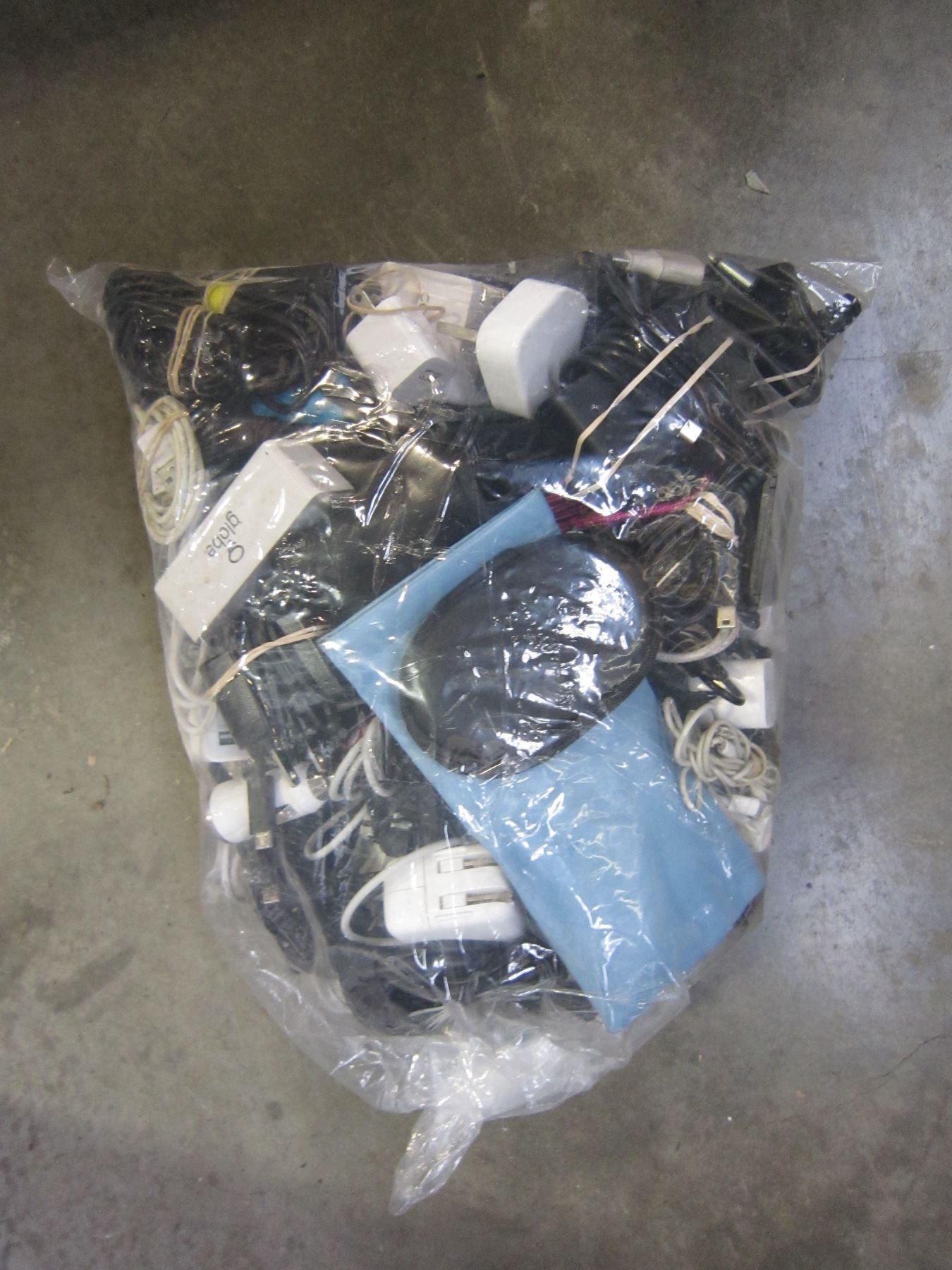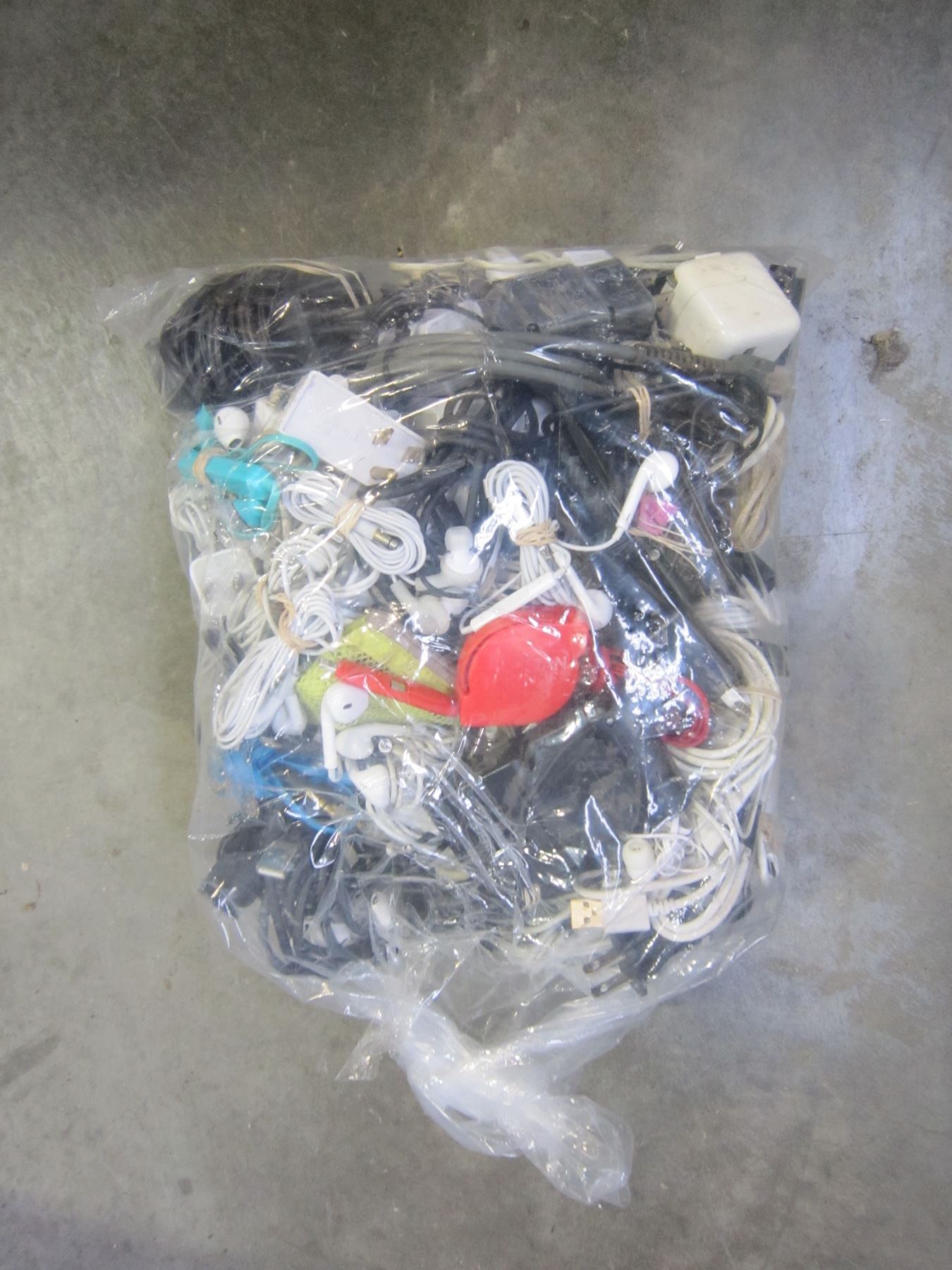 LARGE BAG OF HEAD PHONES, POWER CORDS, AND OTHER CORDS