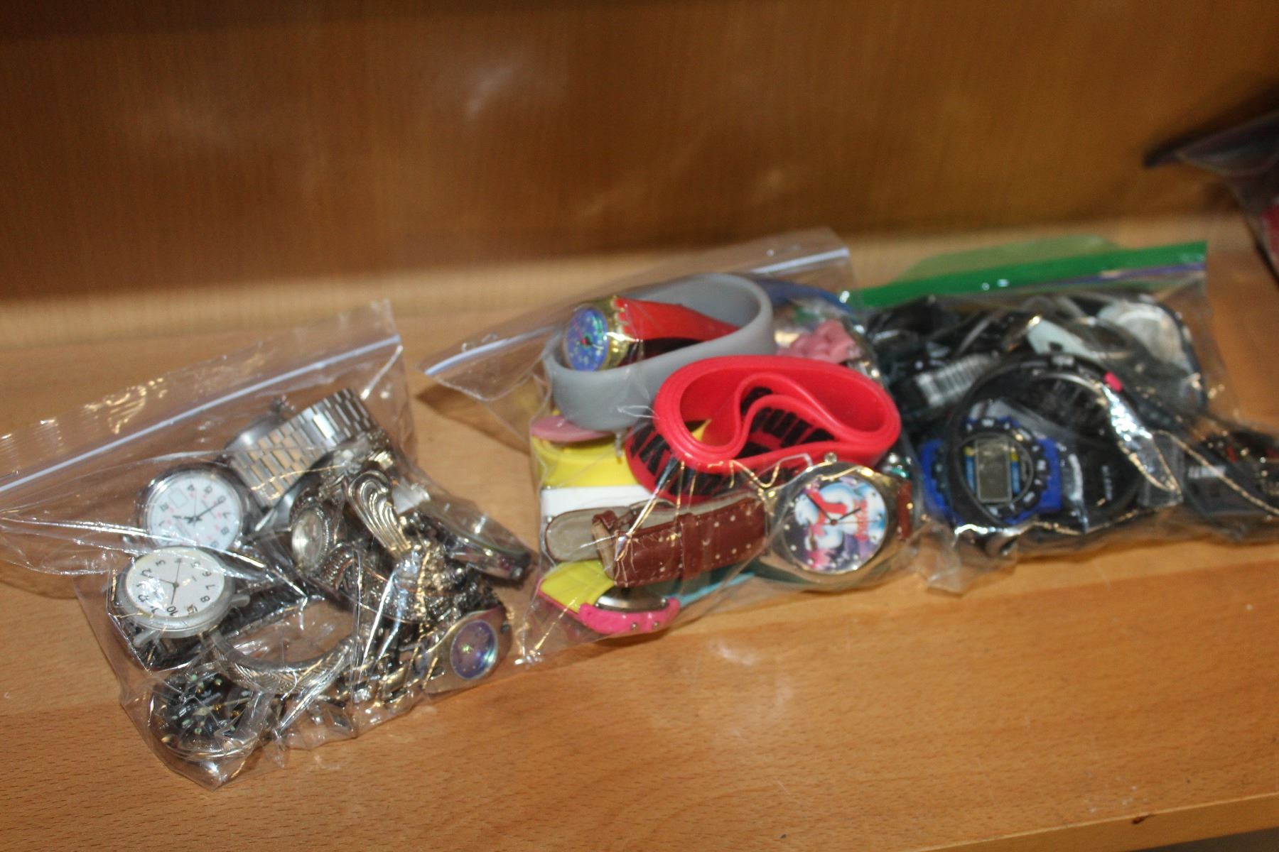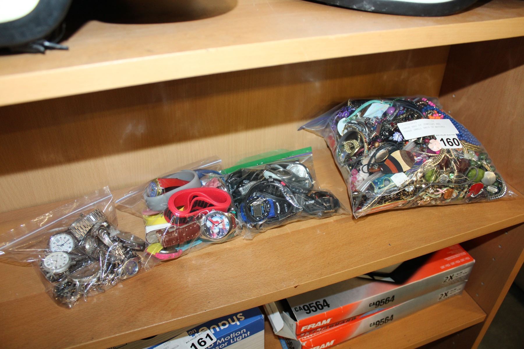 LARGE BAG OF JEWELLRY AND THREE SMALL BAGS OF WATCHES