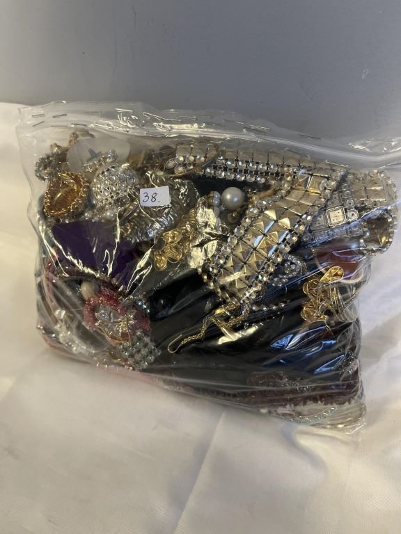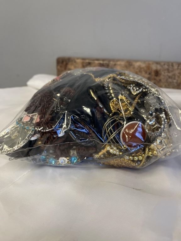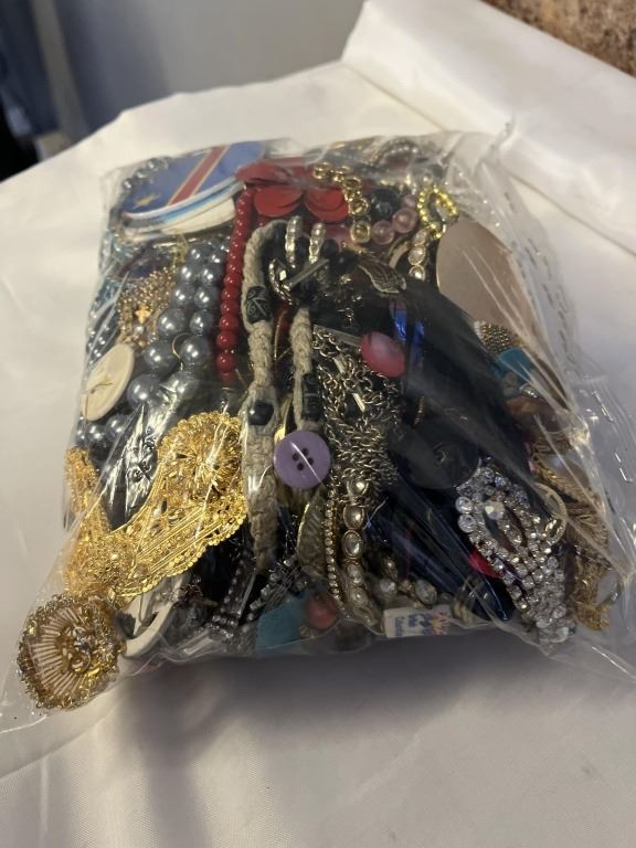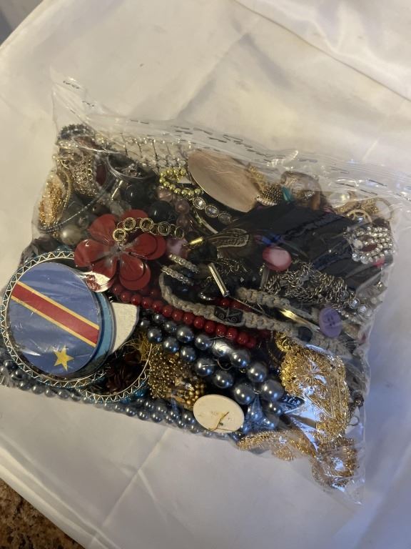 LARGE BAG OF MISC COSTUME JEWELRY, PARTS ETC
