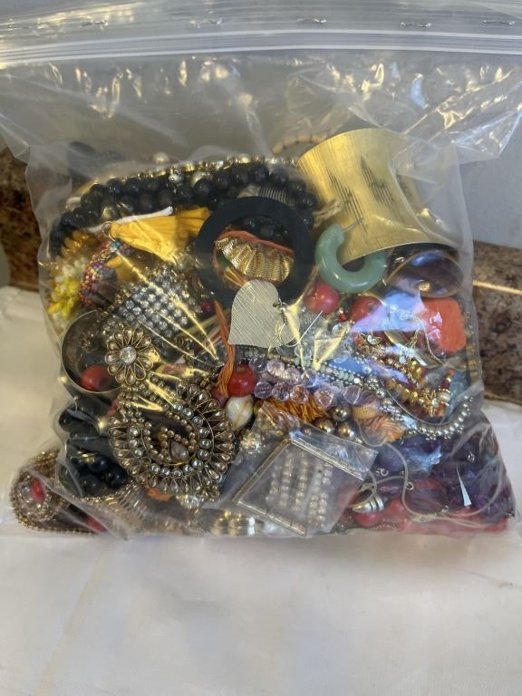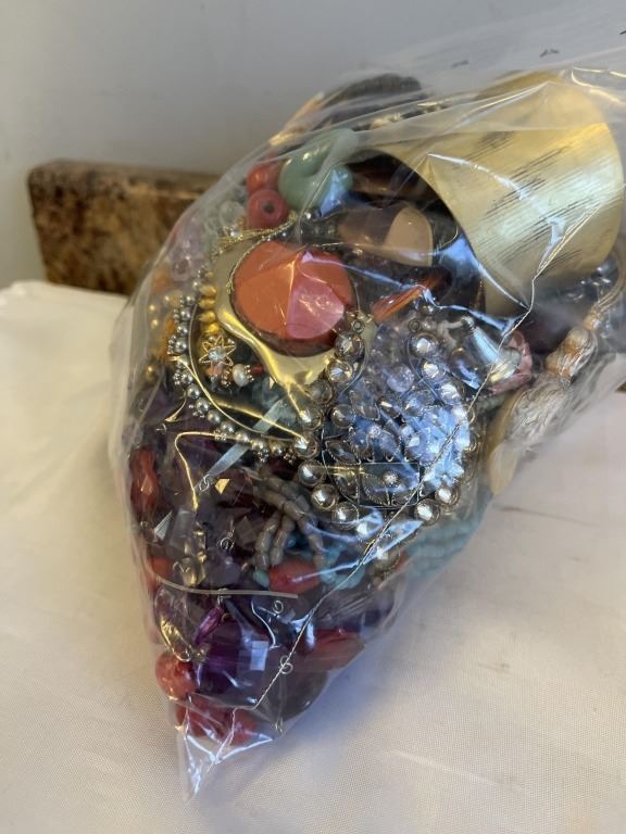 LARGE BAG OF MISC JEWELRY, BEADS AND PARTS