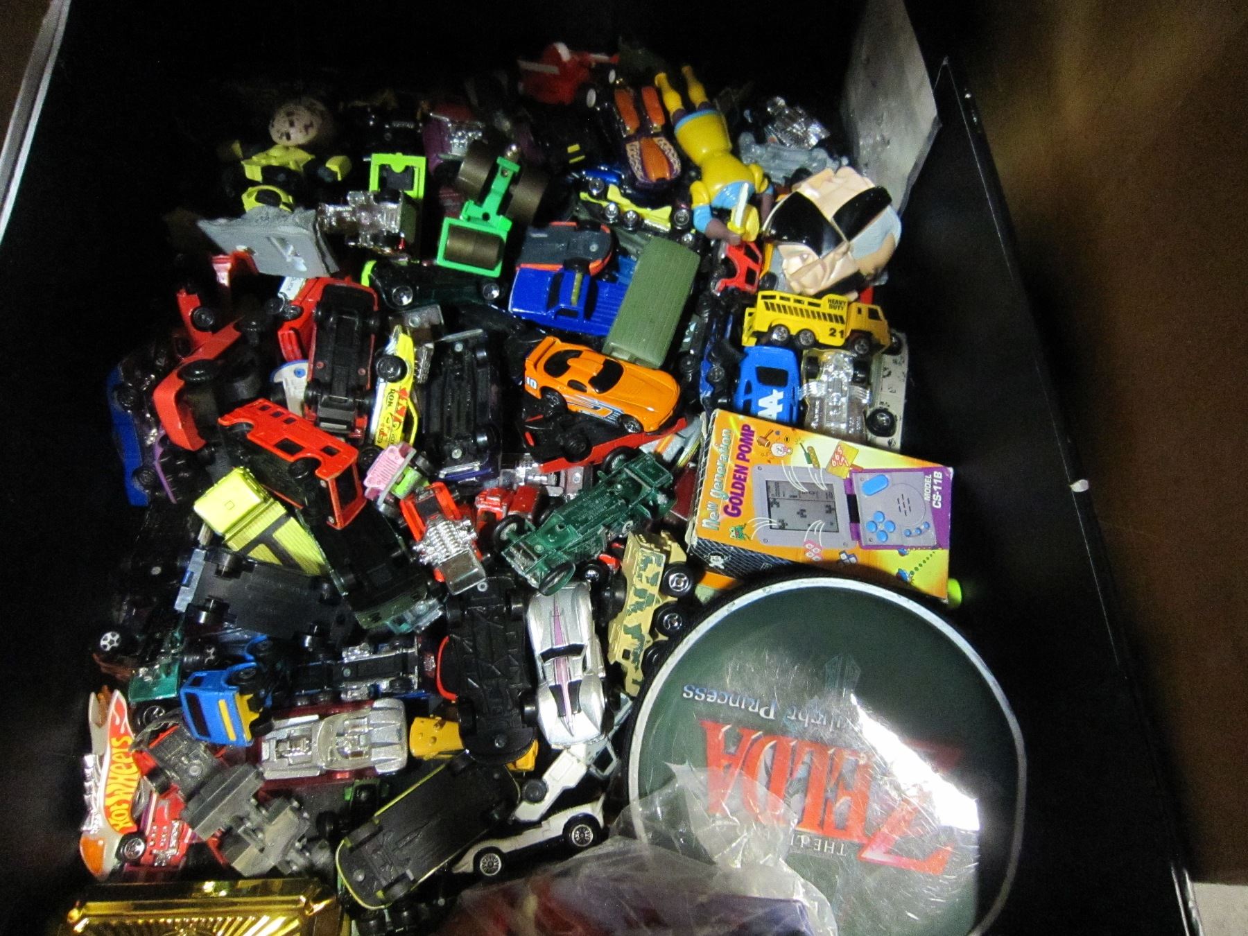 LARGE BLACK BOX W/ MOSTLY HOTWHEELS - SOME VINTAGE
