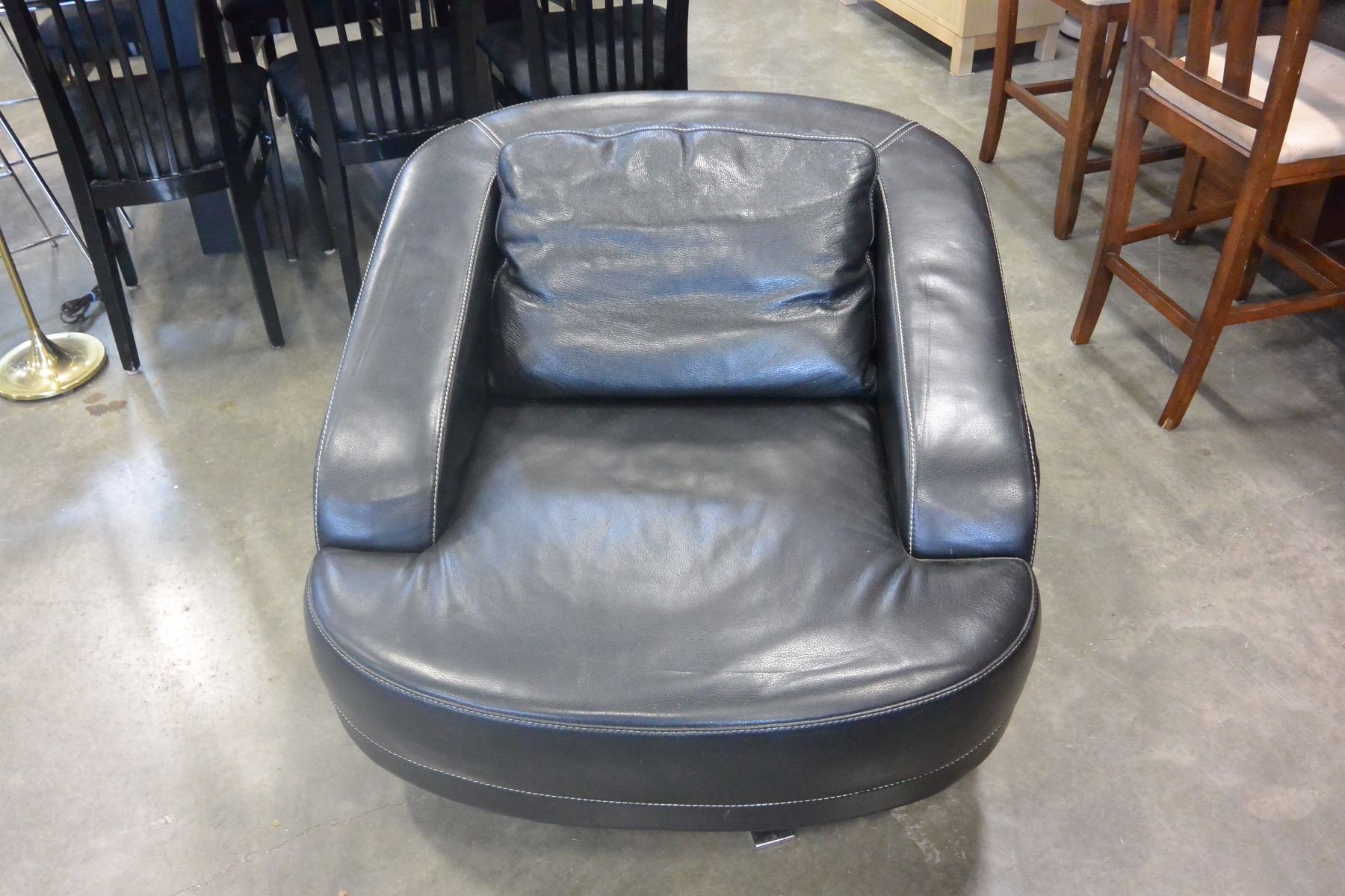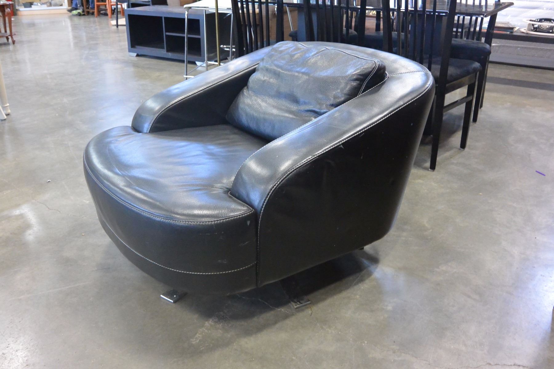 LARGE BLACK LEATHER CHROME LEG DESIGNER ARMCHAIR