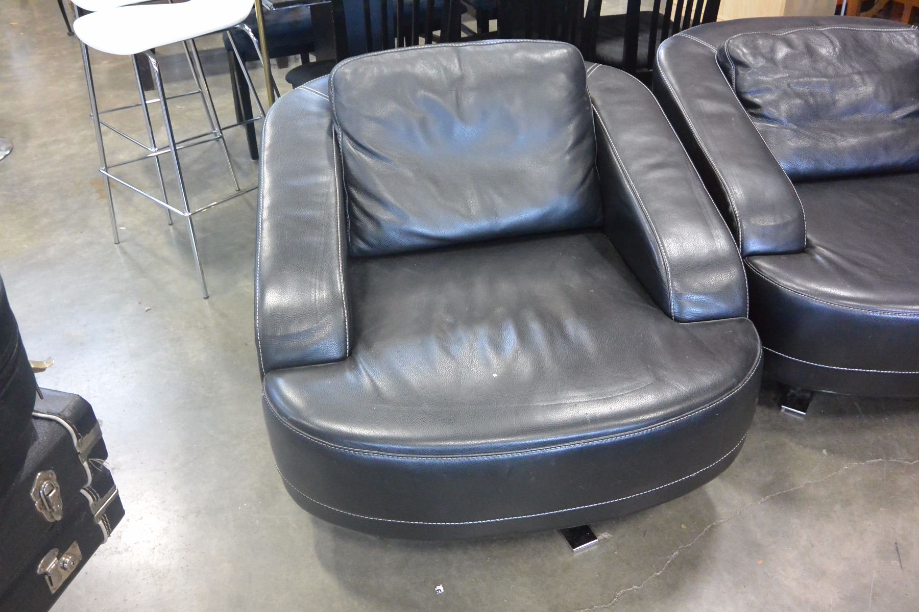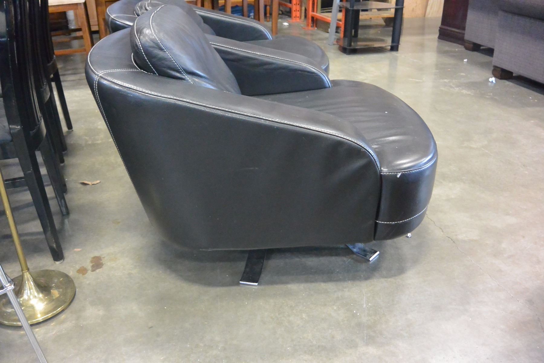 LARGE BLACK LEATHER CHROME LEG DESIGNER ARMCHAIR