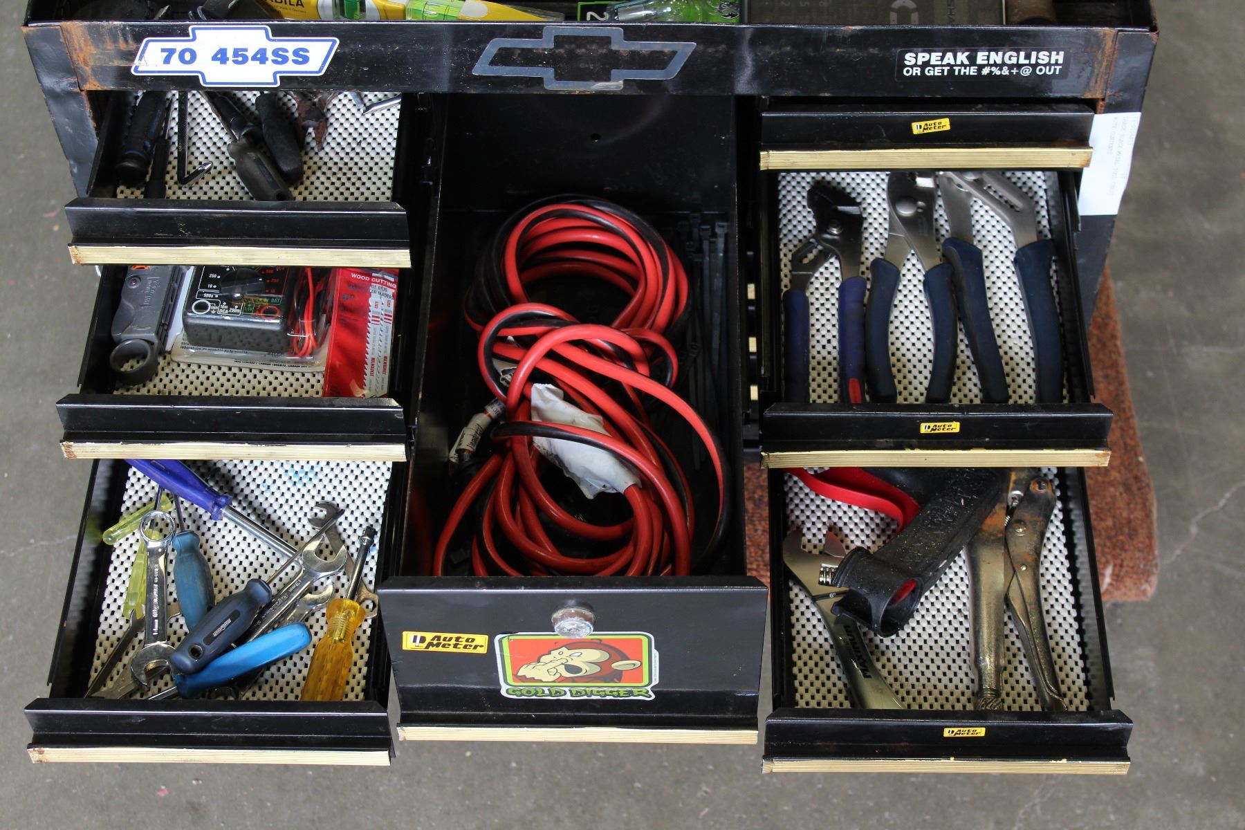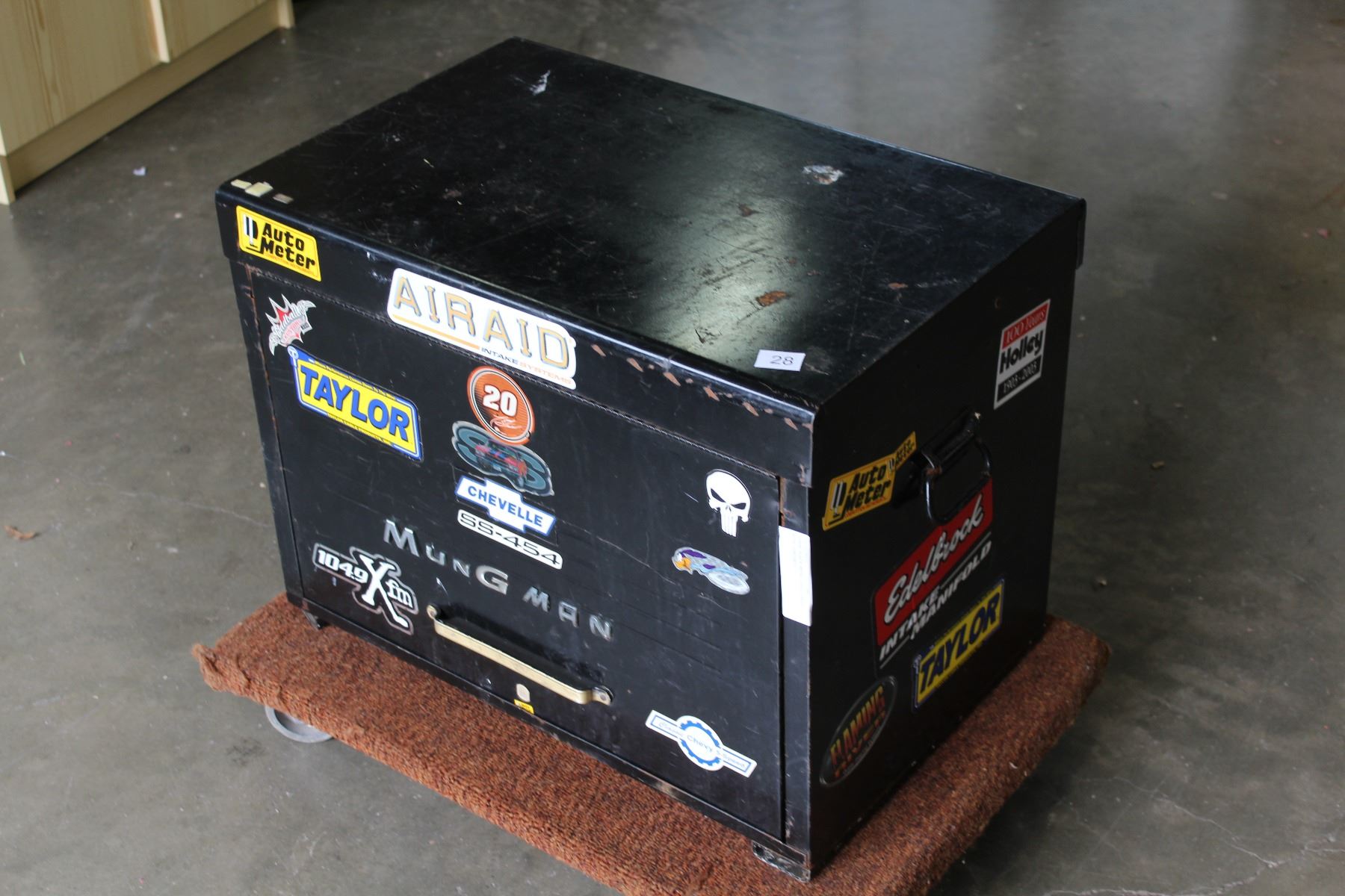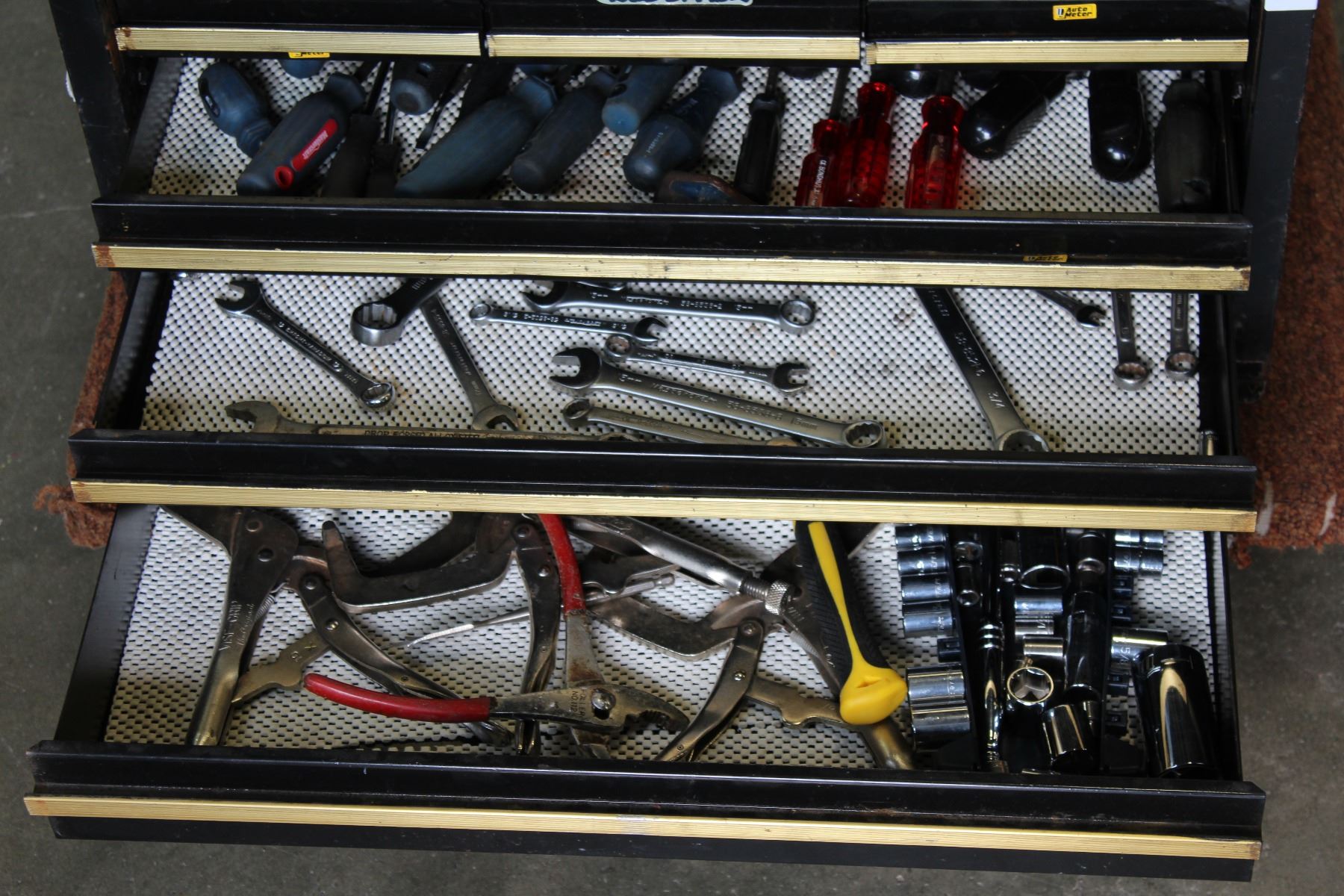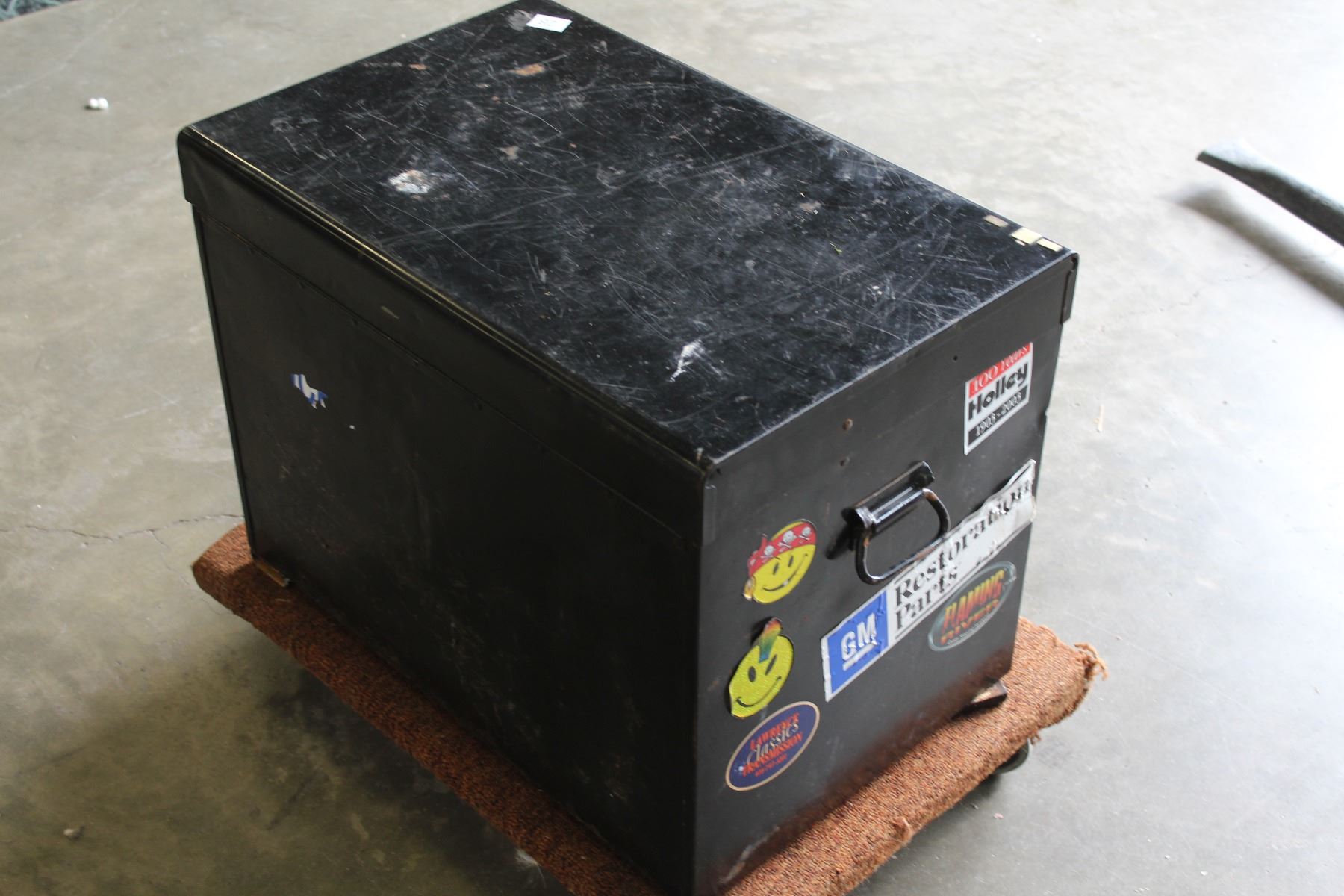 LARGE BLACK METAL TOOL CHEST WITH CONTENTS
