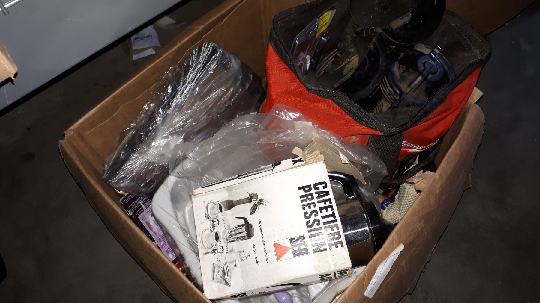 LARGE BOX OF LOST PROPERTY ITEMS, PANDEMIC BOARD GAME, FOOT SPA