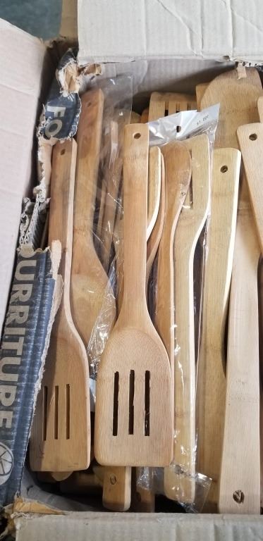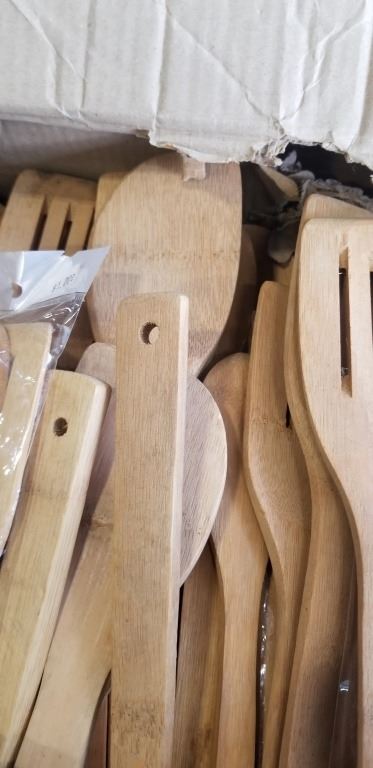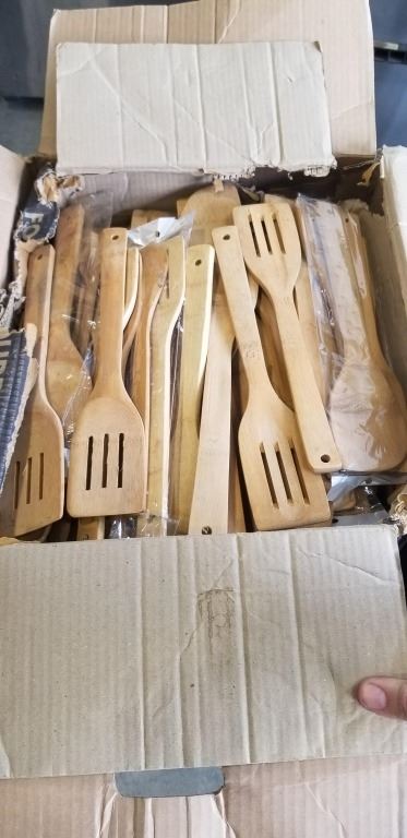 LARGE BOX OF NEW WOODEN COOKING SPOONS