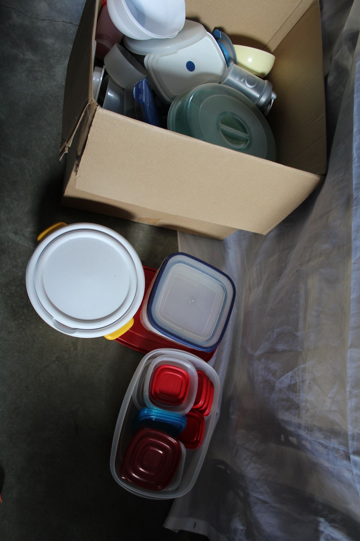 LARGE BOX OF RUBBERMAID TUPPER WARE