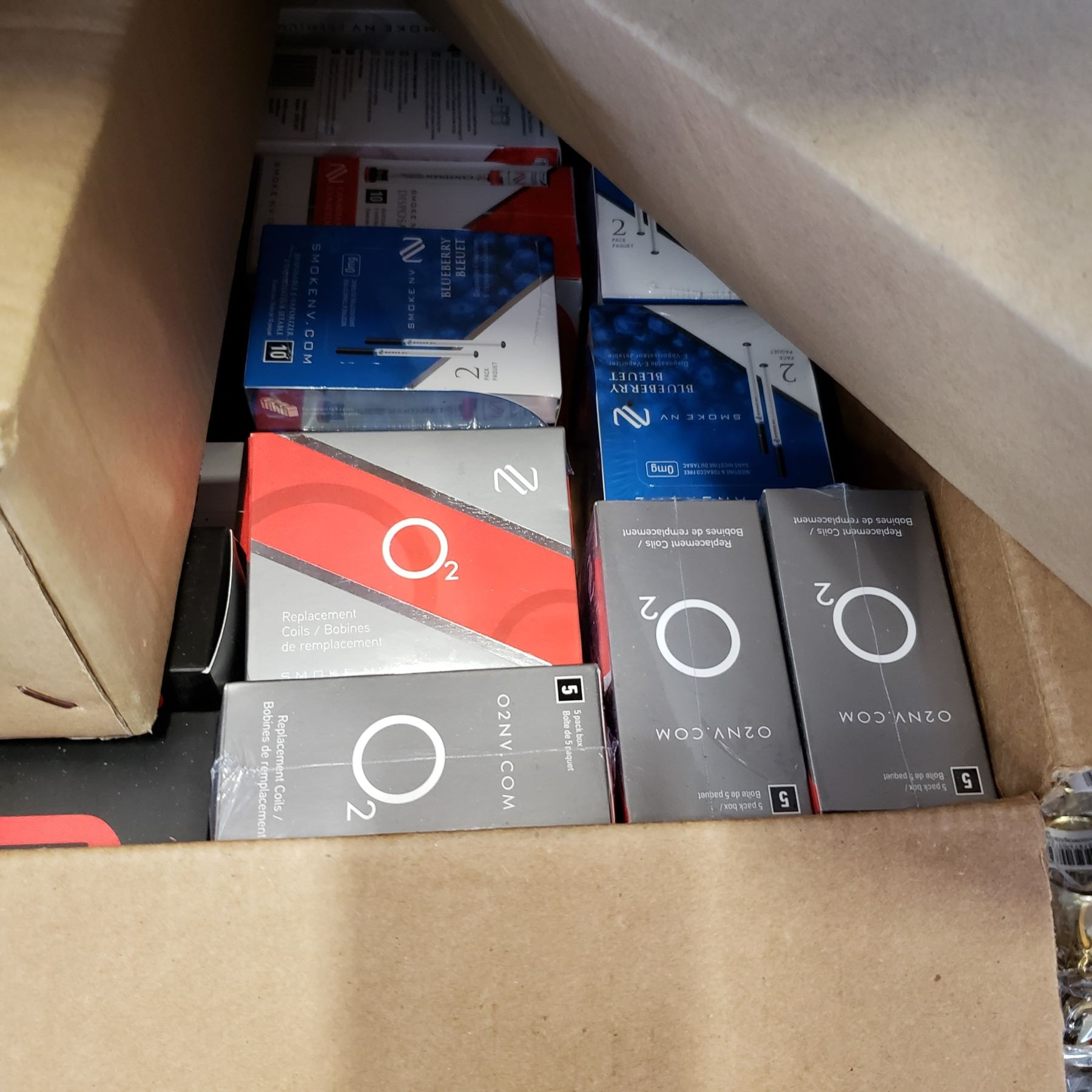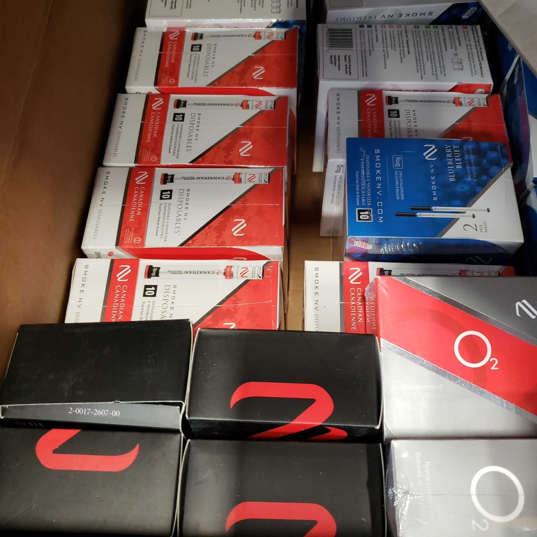 LARGE BOX OF SMOKE NV STARTER KITS AND CARTRIDGES