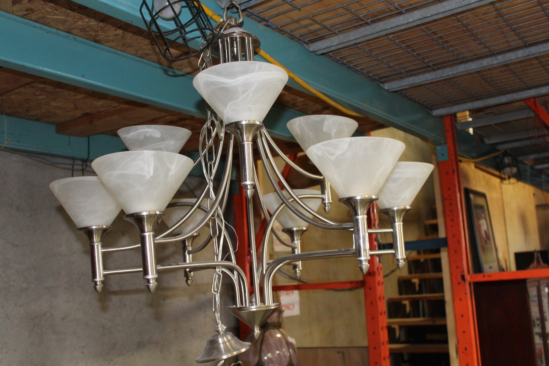 LARGE BRUSHED NICKLE CHANDELIER RETAILS $600