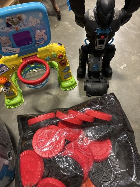 LARGE CHECKERS SET WITH BATMAN TOY, KIDS BASKETBALL HOOP AND NERF BUNKER