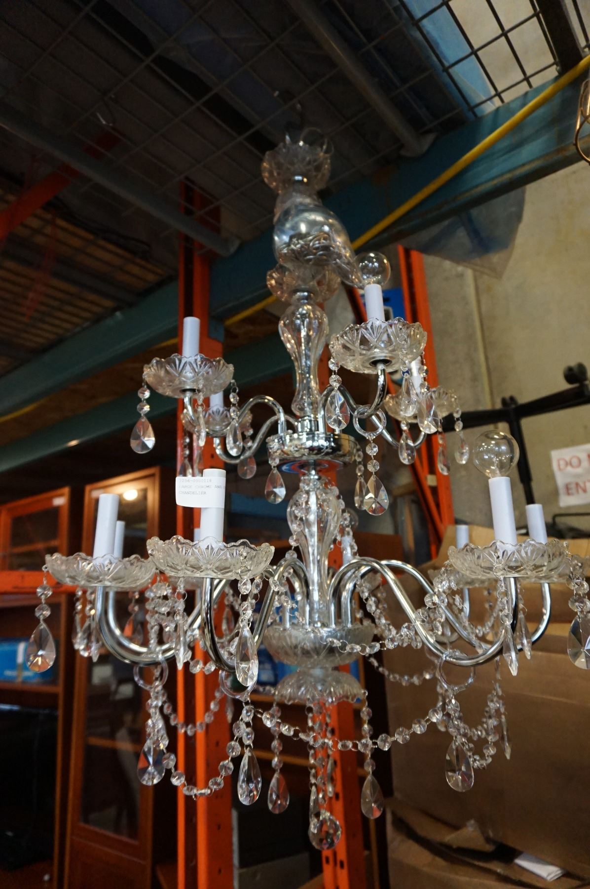 LARGE CHROME AND CRYSTAL CHANDELIER