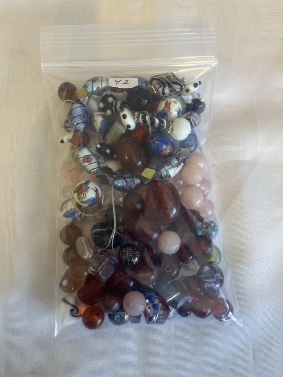 LARGE COLLECTION OF GLASS AND PORECELAIN BEADS