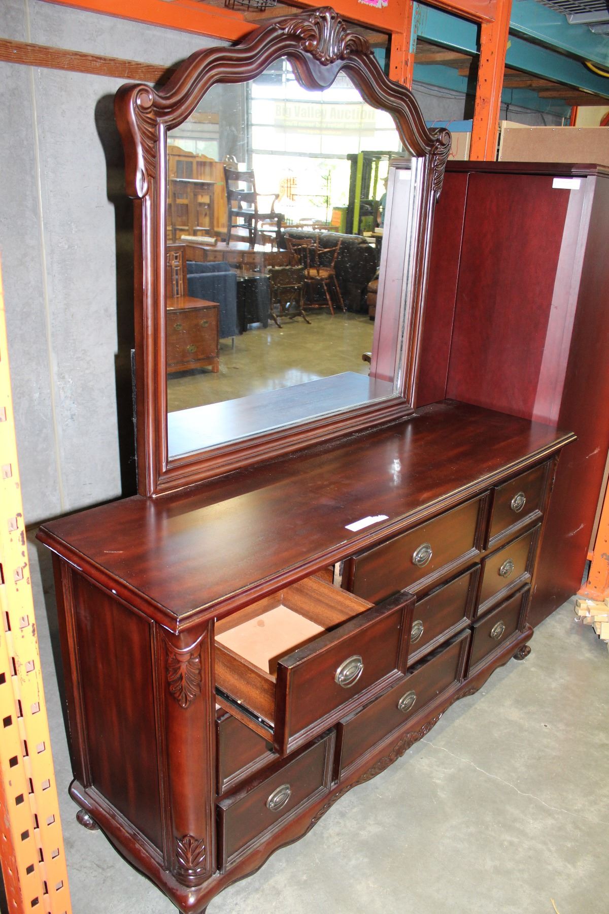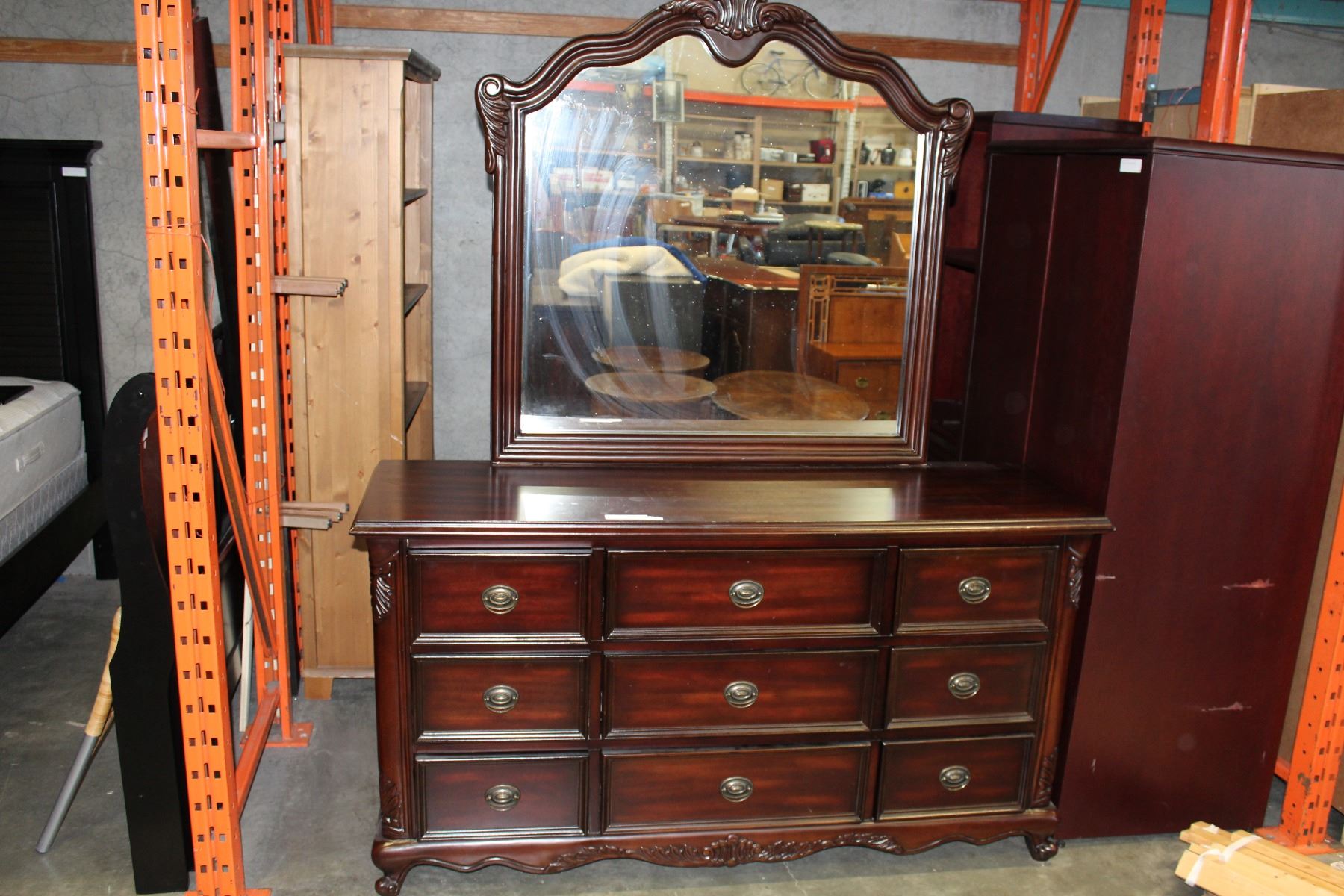 LARGE DESIGNER MAHOGANY LADIES DRESSER WITH MIRROR