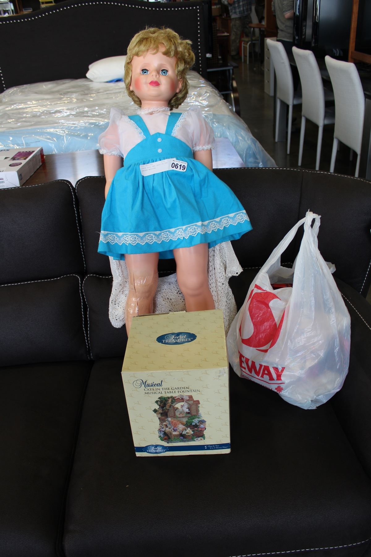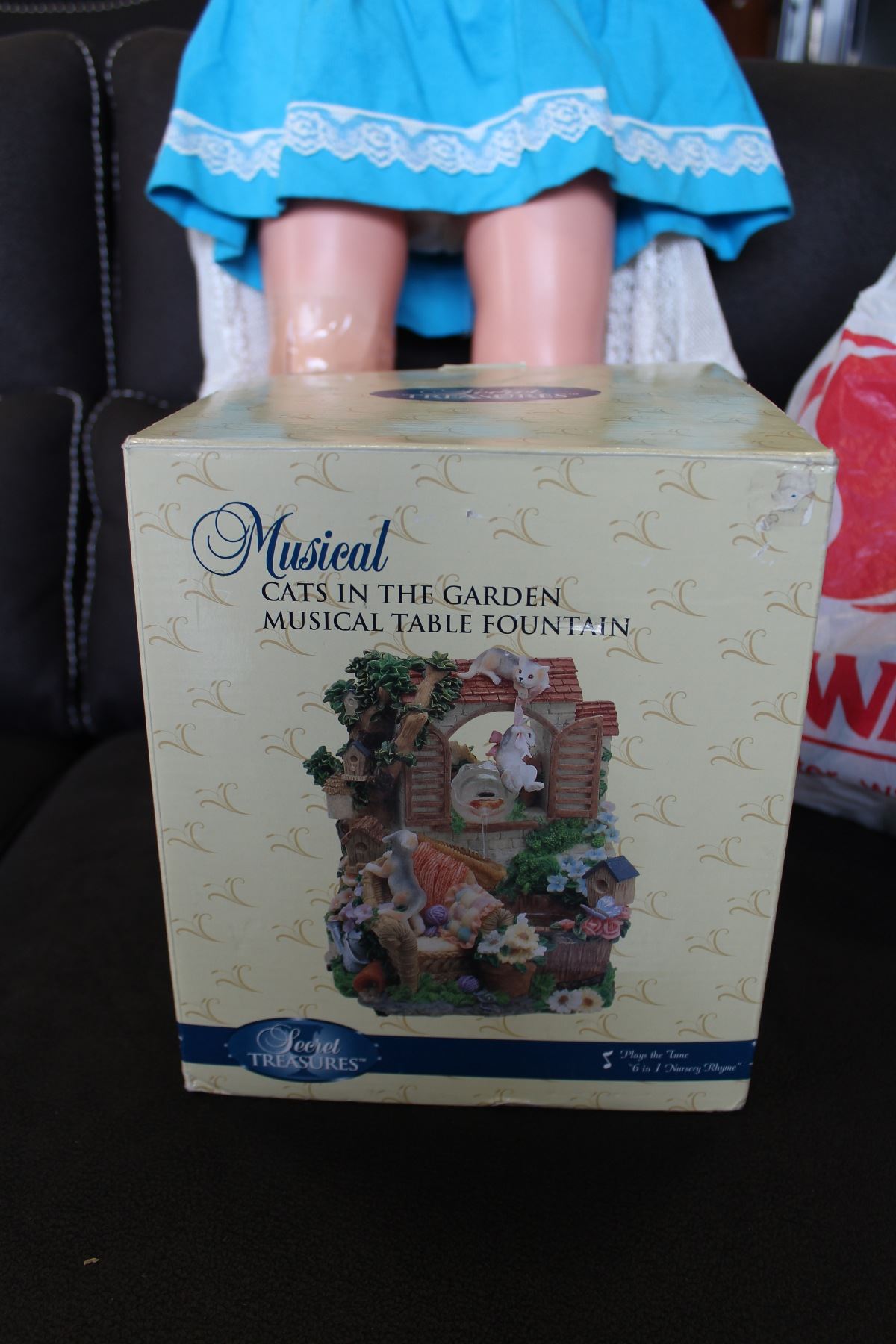 LARGE DOLL AND CATS IN THE GARDEN MUSICAL